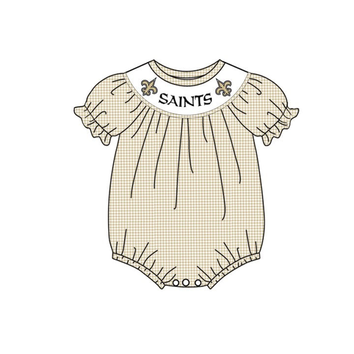 MOQ 3 pcs short sleeves khaki plaid girls team romper