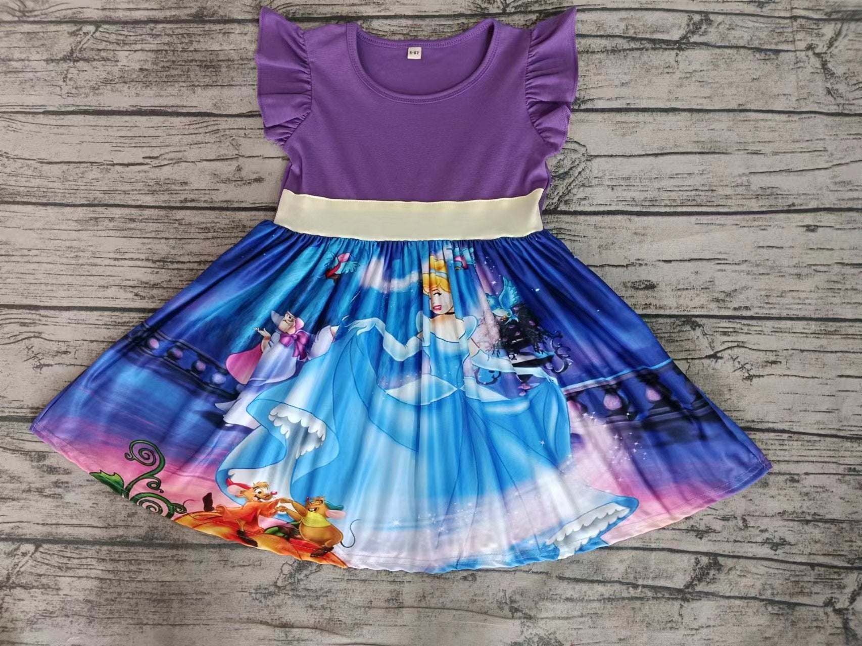 MOQ 3 purple flutter sleeves carriage princess girls dresses