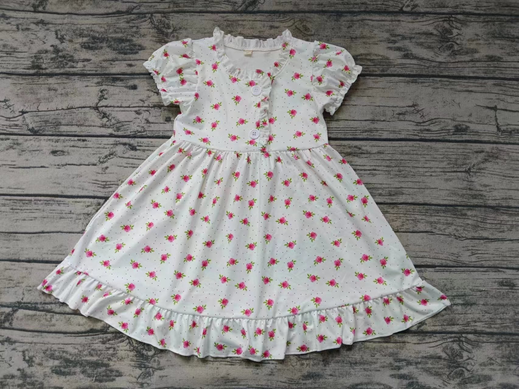 MOQ 3 short sleeves polka dots floral kids girls summer nightgown