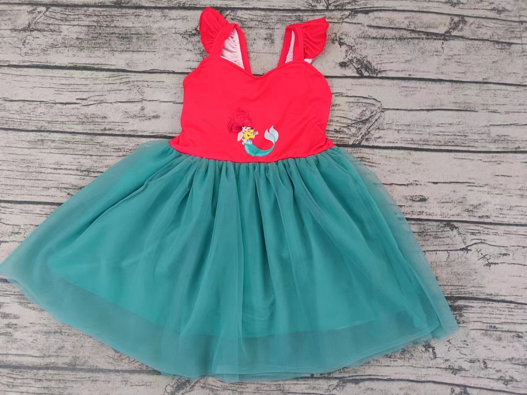 MOQ 5 Flutter sleeves red green fish princess girls tulle dress