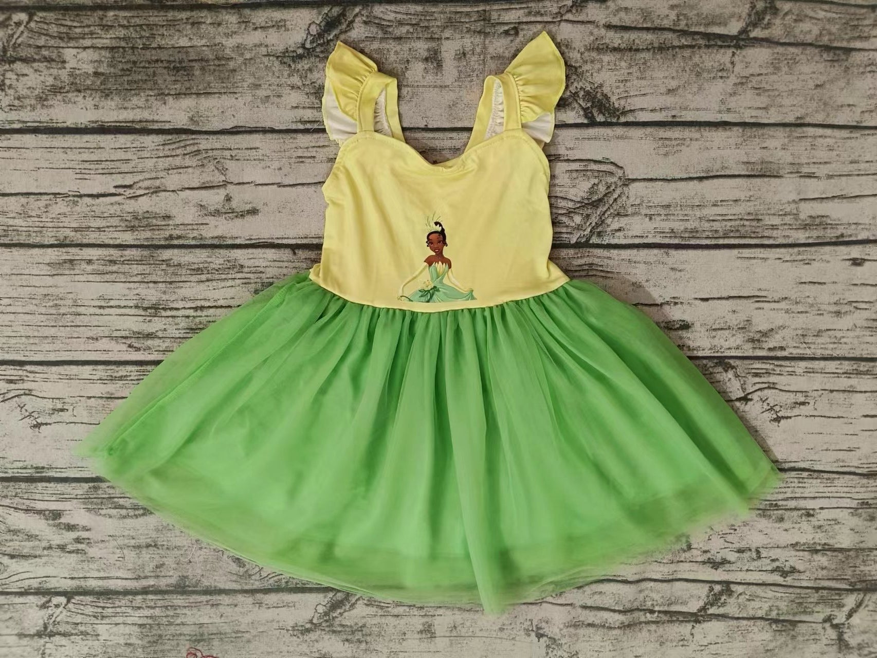 MOQ 5 flutter sleeves yellow green princess girls tulle dress