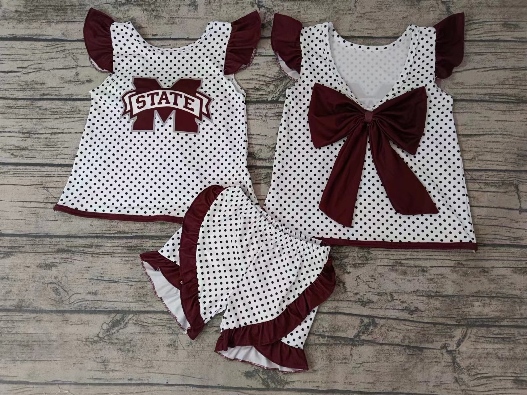 MOQ 5 M maroon polka dots bow backless girls team outfits