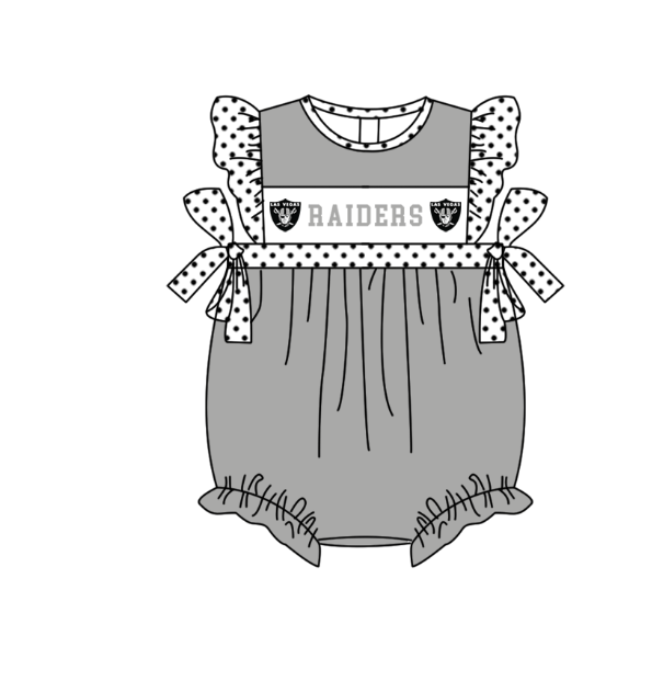 MOQ 5 pcs gray flying sleeves white polka dots bow baby girls team romper