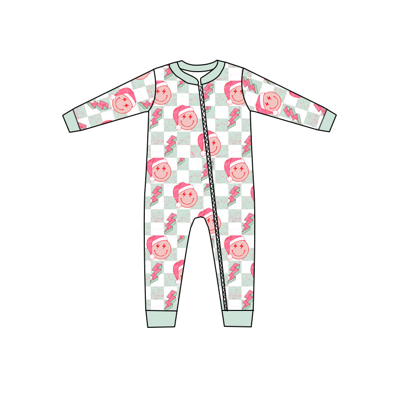 MOQ 5 PCS smile plaid Christmas hat baby kids zipper romper