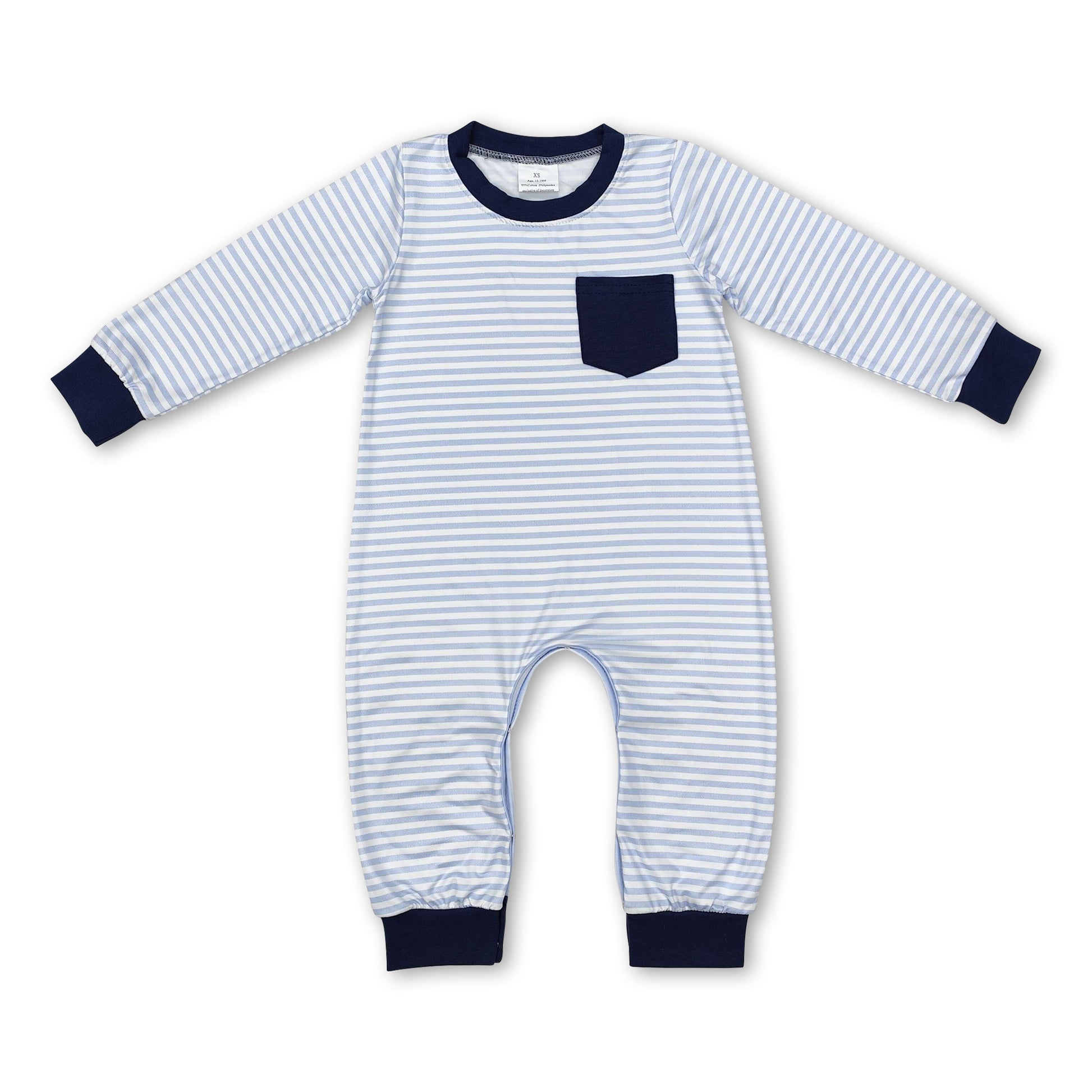 Navy pocket stripe long sleeves baby boy romper