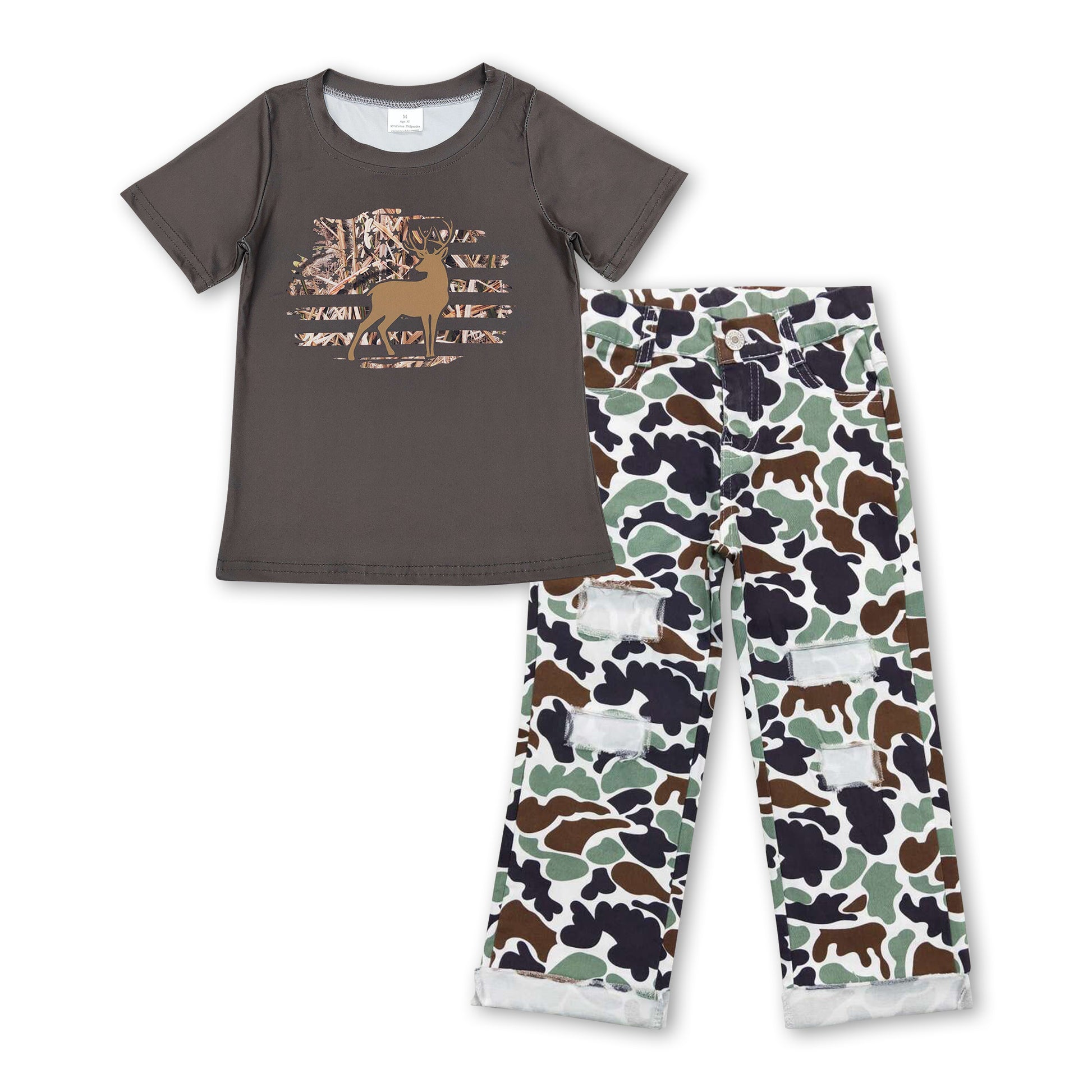 Olive deer top camo jeans boys hunting clothing