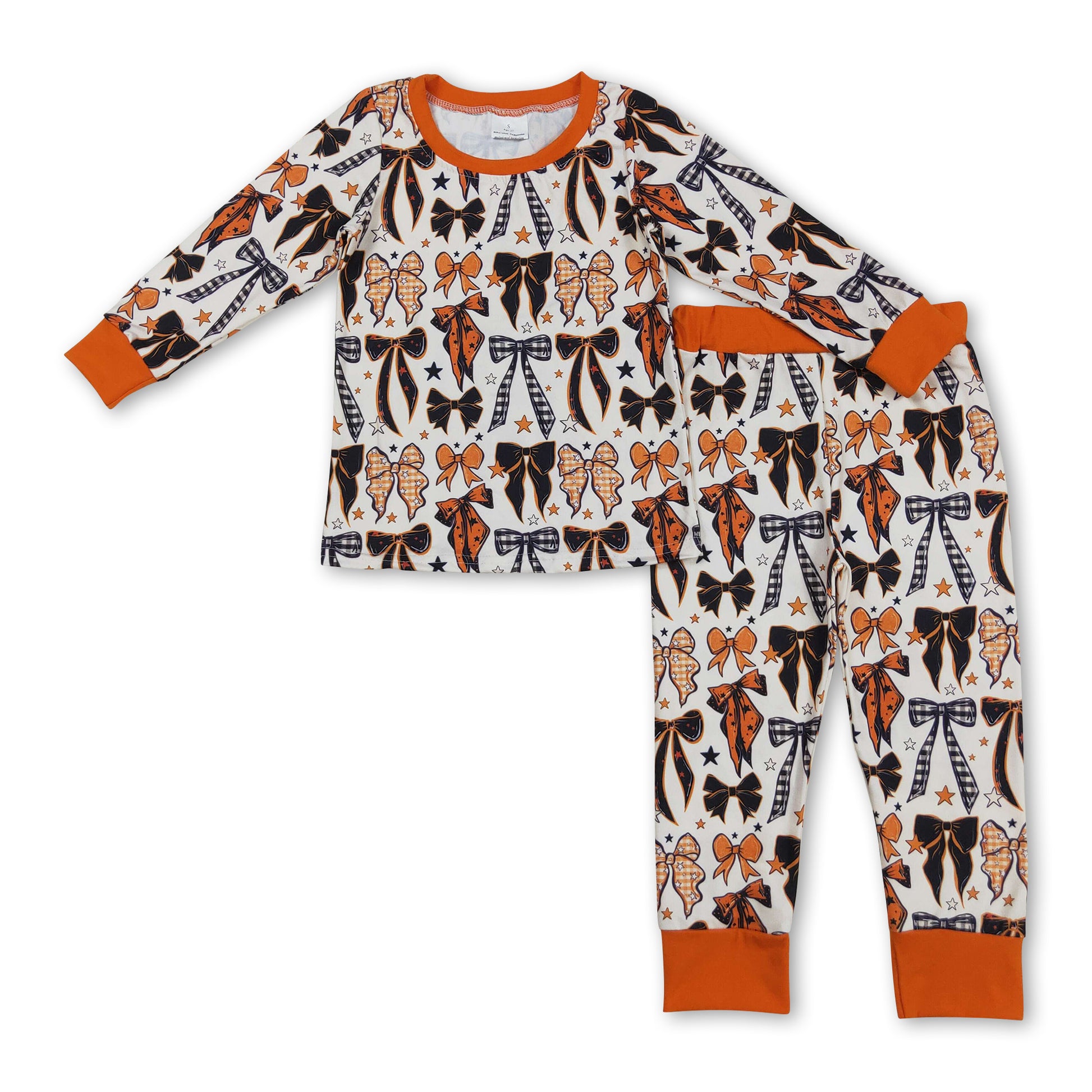 Orange black bows long sleeves kids girls Halloween pajamas