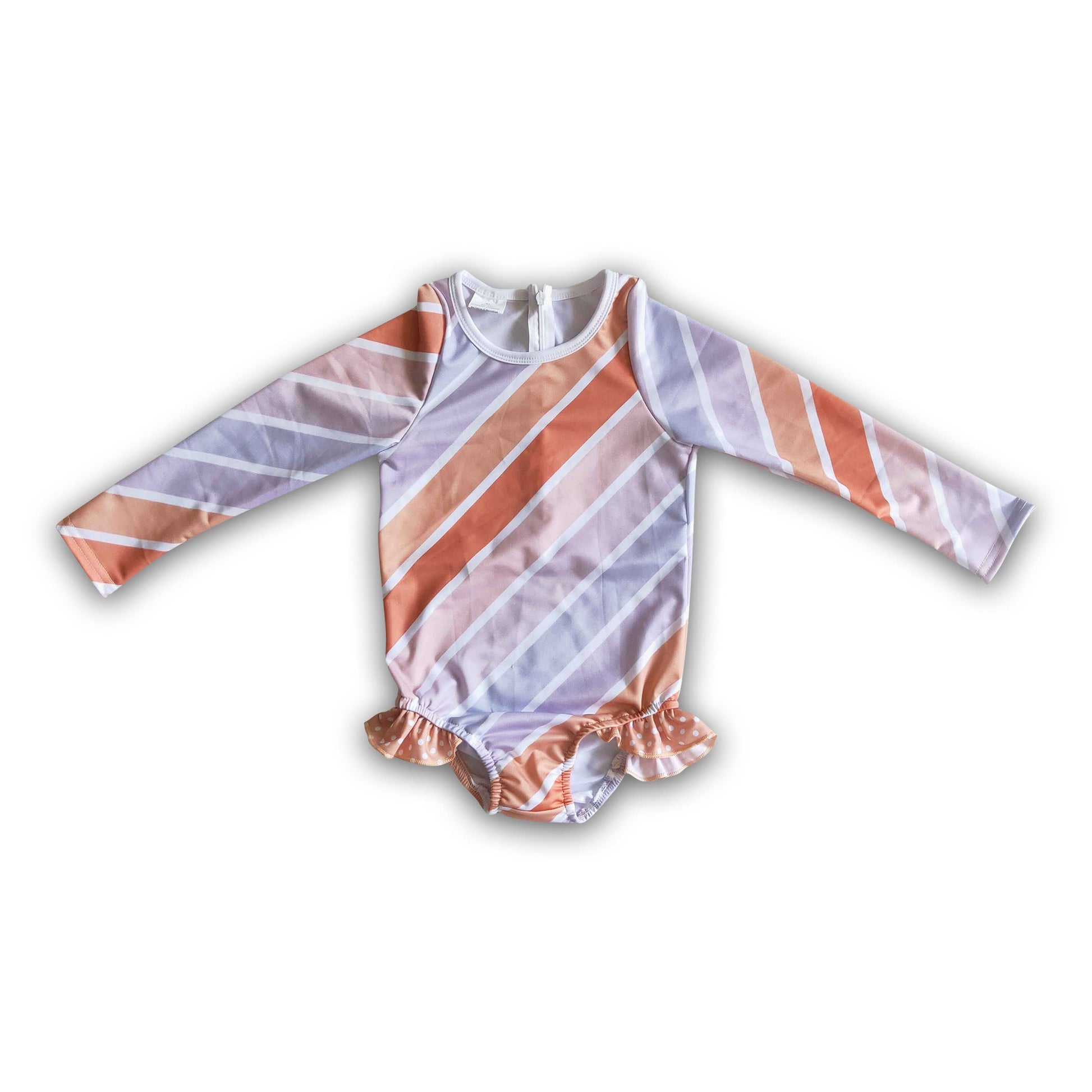 Orange kahki grey white stripe long sleeve baby girls swimsuit