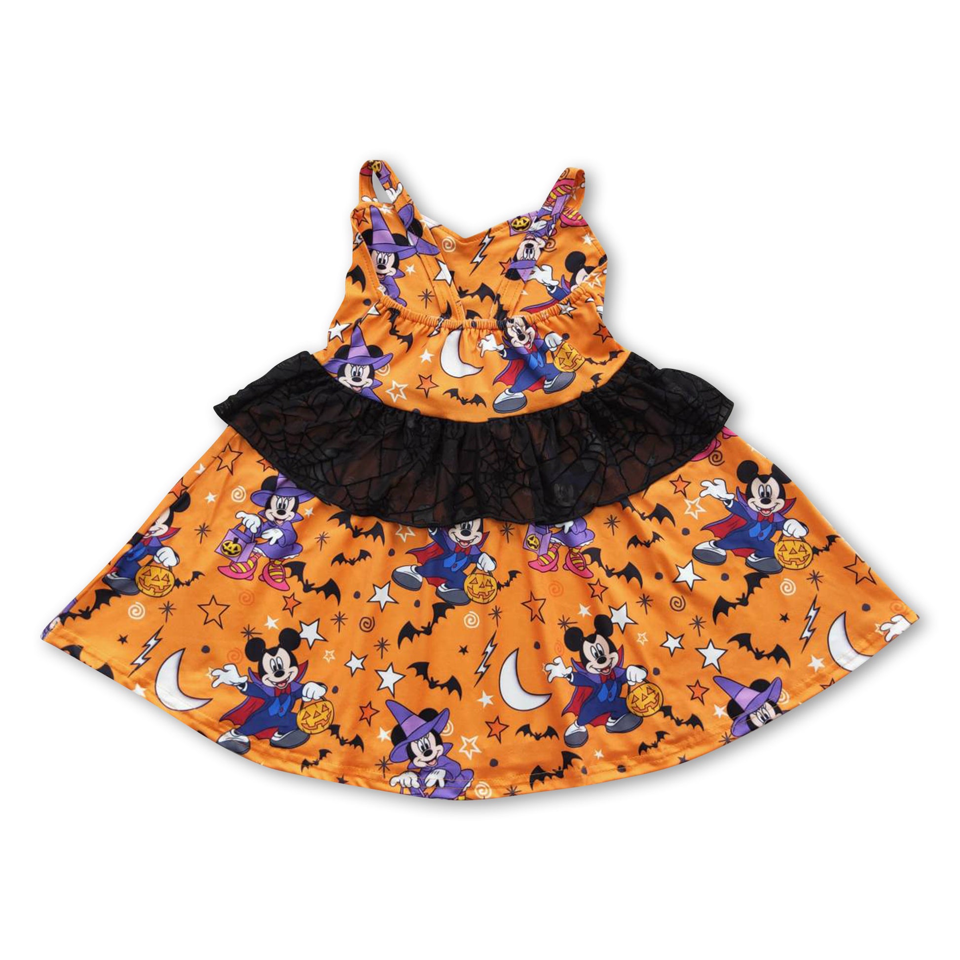 Orange sleeveless mouse tulle baby girls Halloween dress