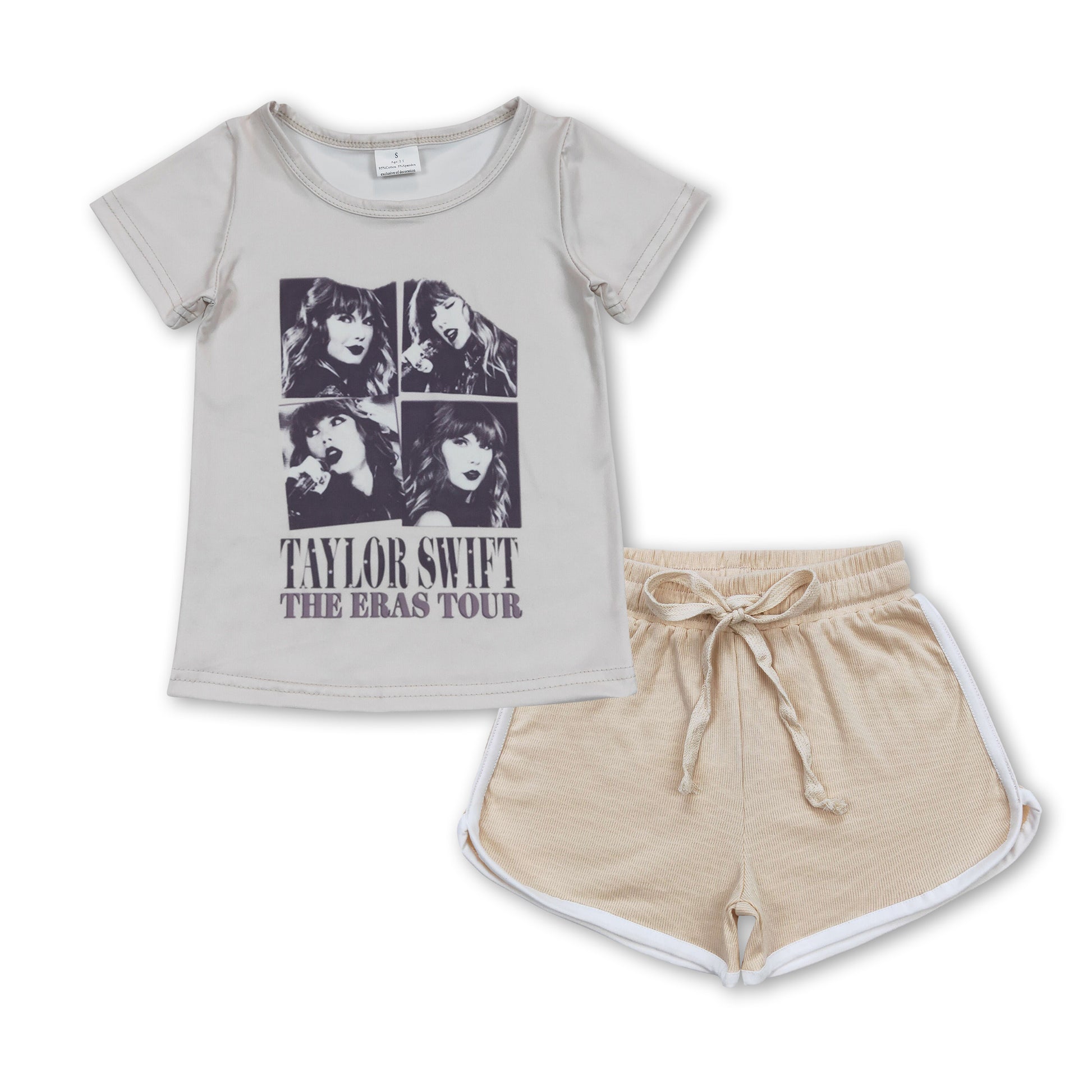 Patchwork top beige cotton shorts singer girls clothes