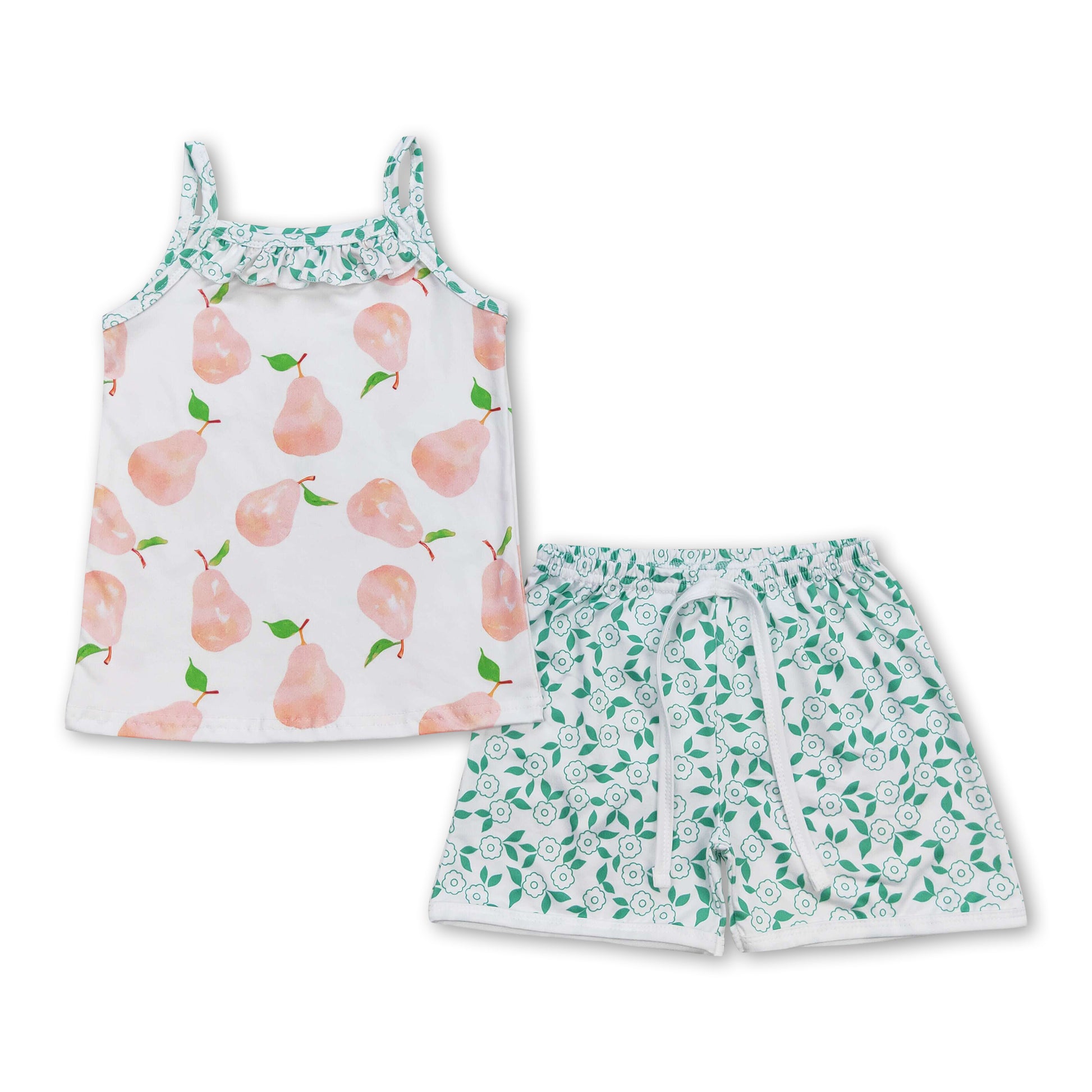 Pear ruffle top shorts girls summer clothing