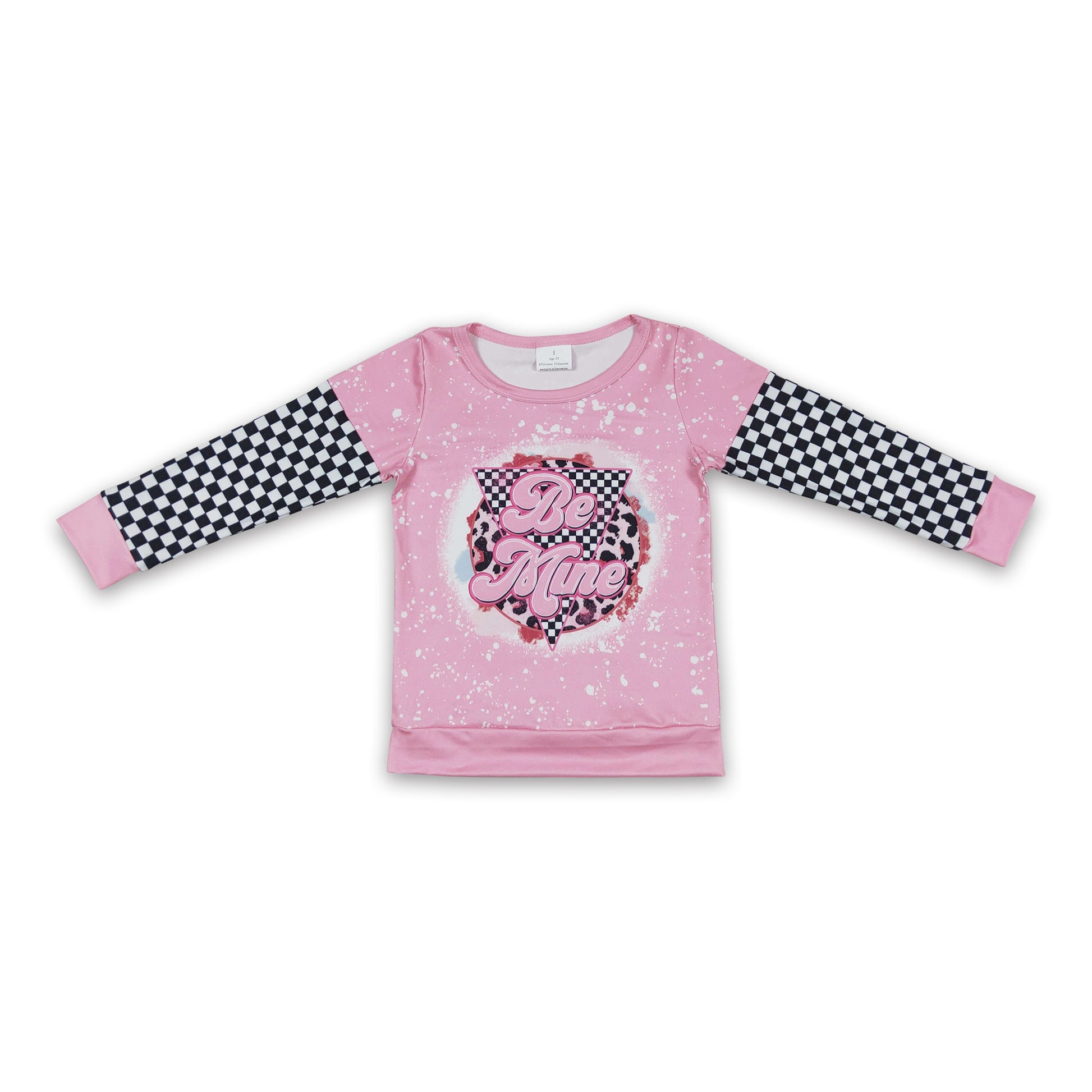 Pink be mine plaid long sleeves girls Valentine's day sweatshirt