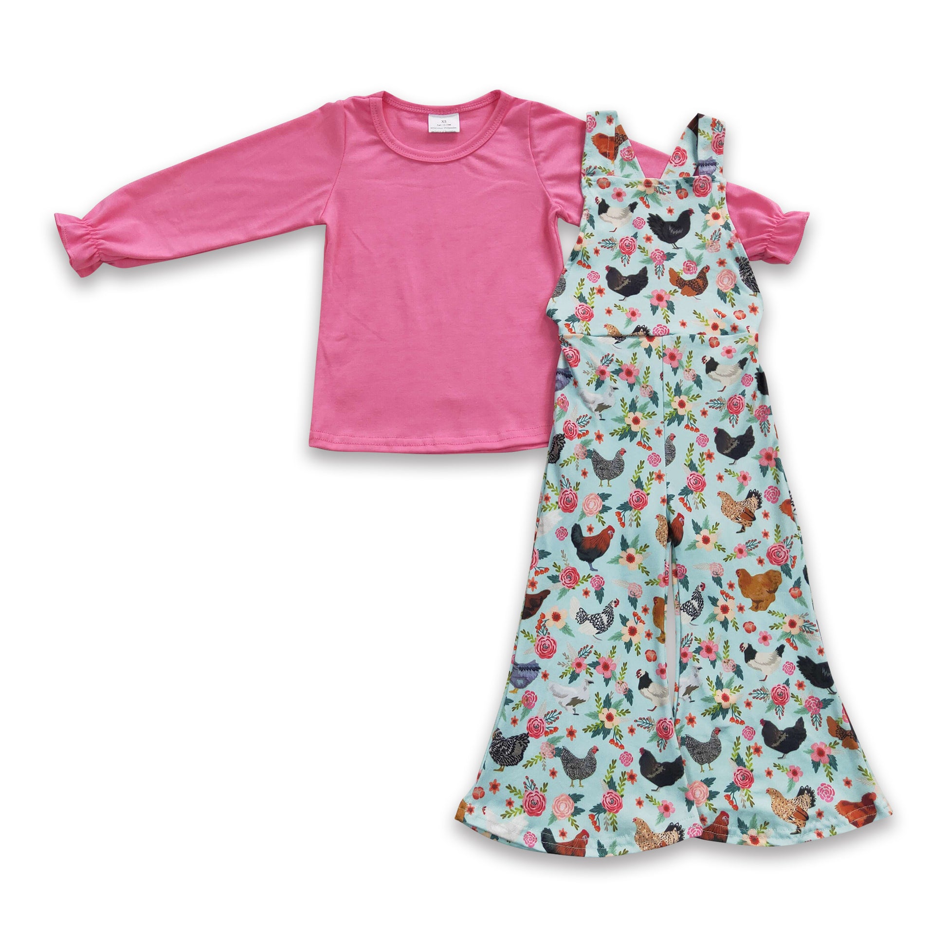 Pink cotton shirt chicken overalls girls outfits