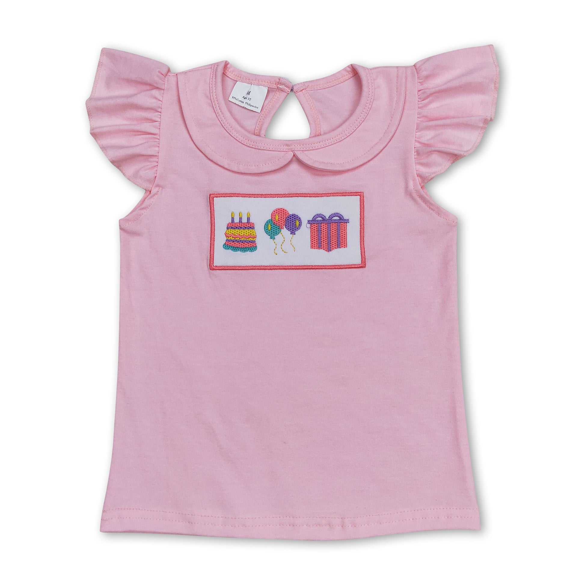 Pink flutter sleeves cake balloon gift kids girls birthday shirt