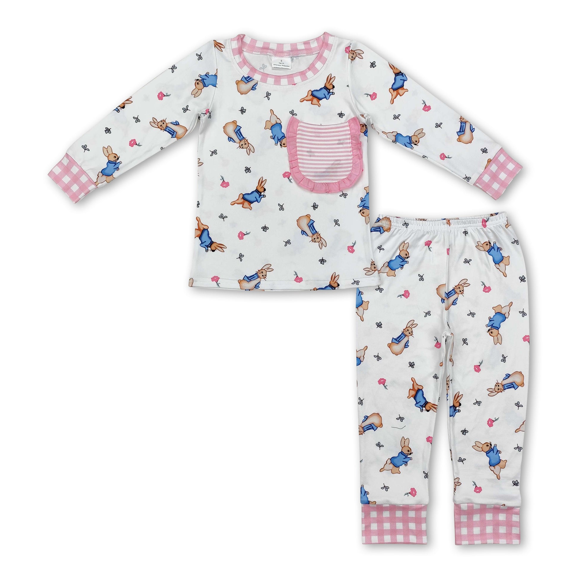 Pink plaid pocket rabbit baby girls Easter pajamas