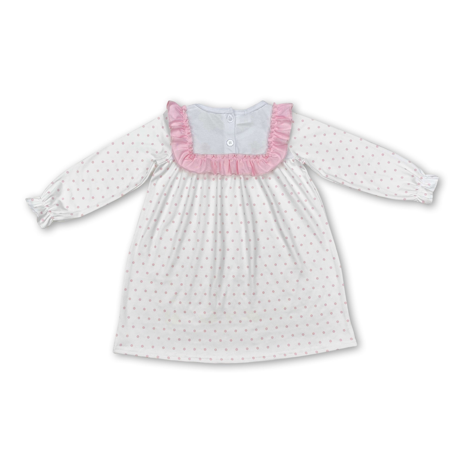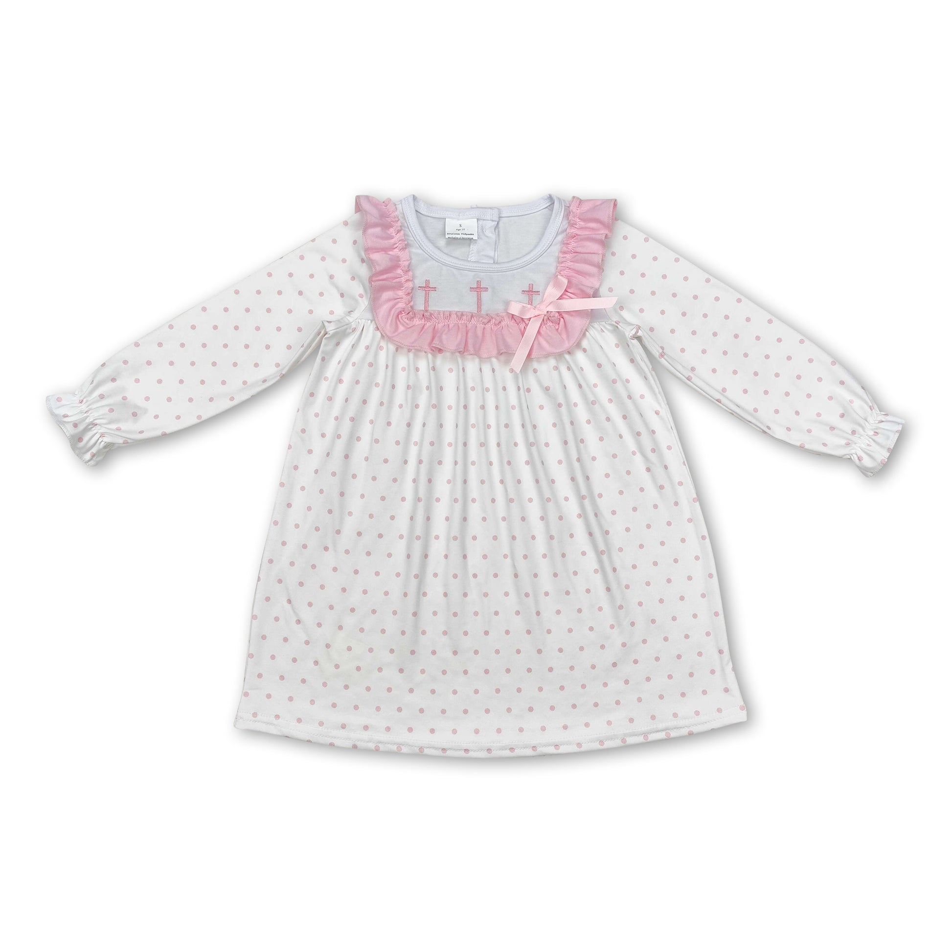 Pink polka dots long sleeves cross girls Easter dresses