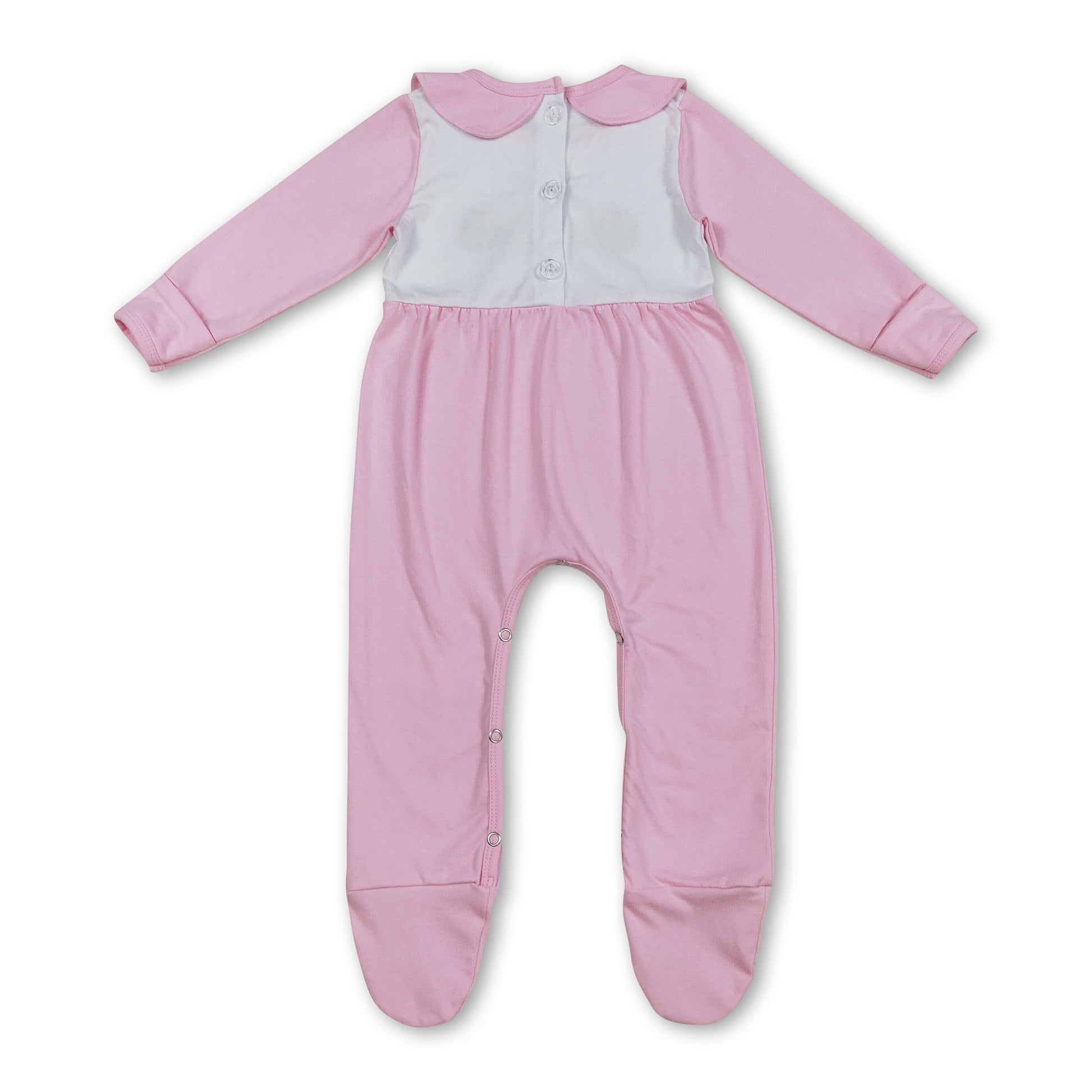 Pink pumpkin turkey baby girl Thanksgiving footed romper