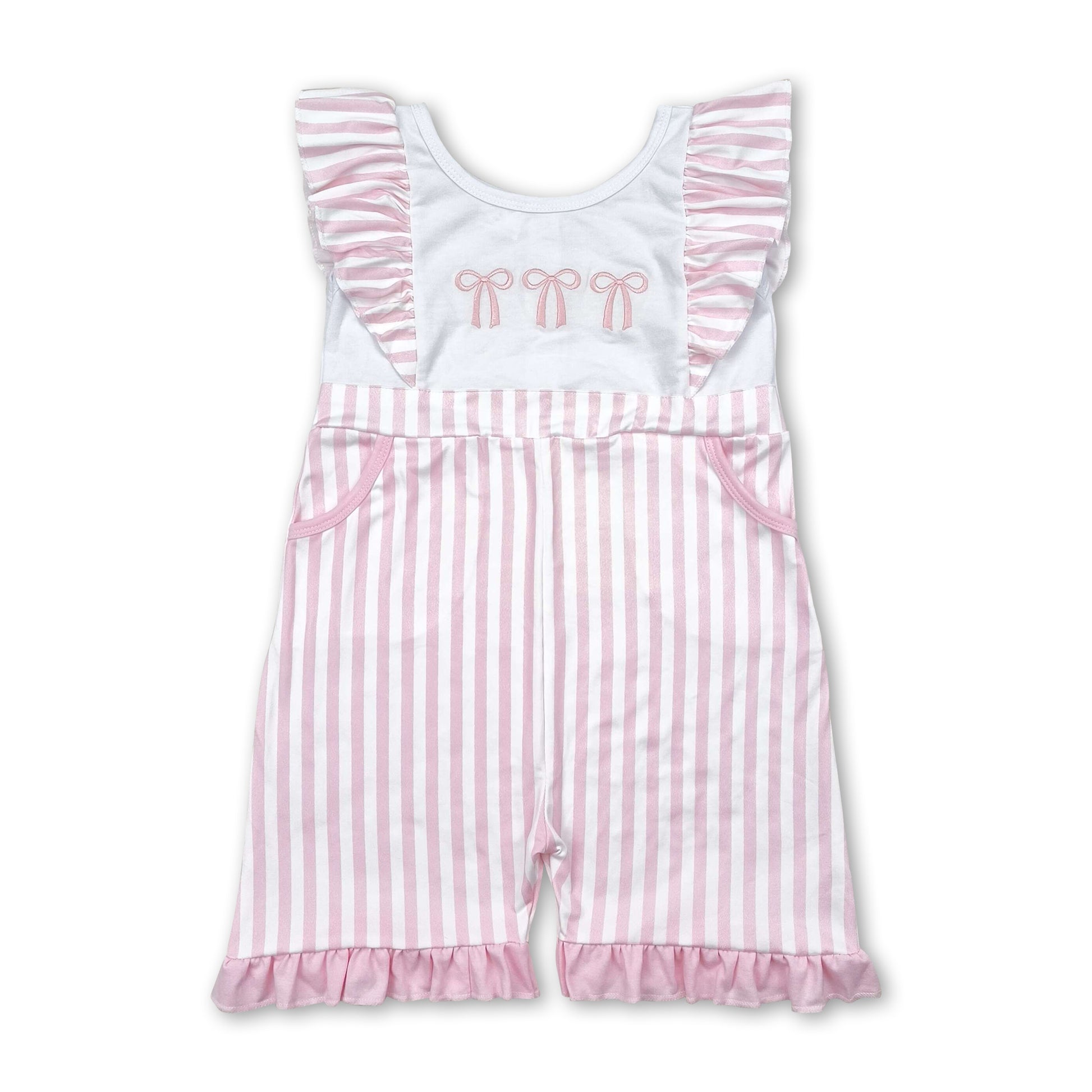 Pink stripe bow flutter sleeves pockets baby girls jumpsuit