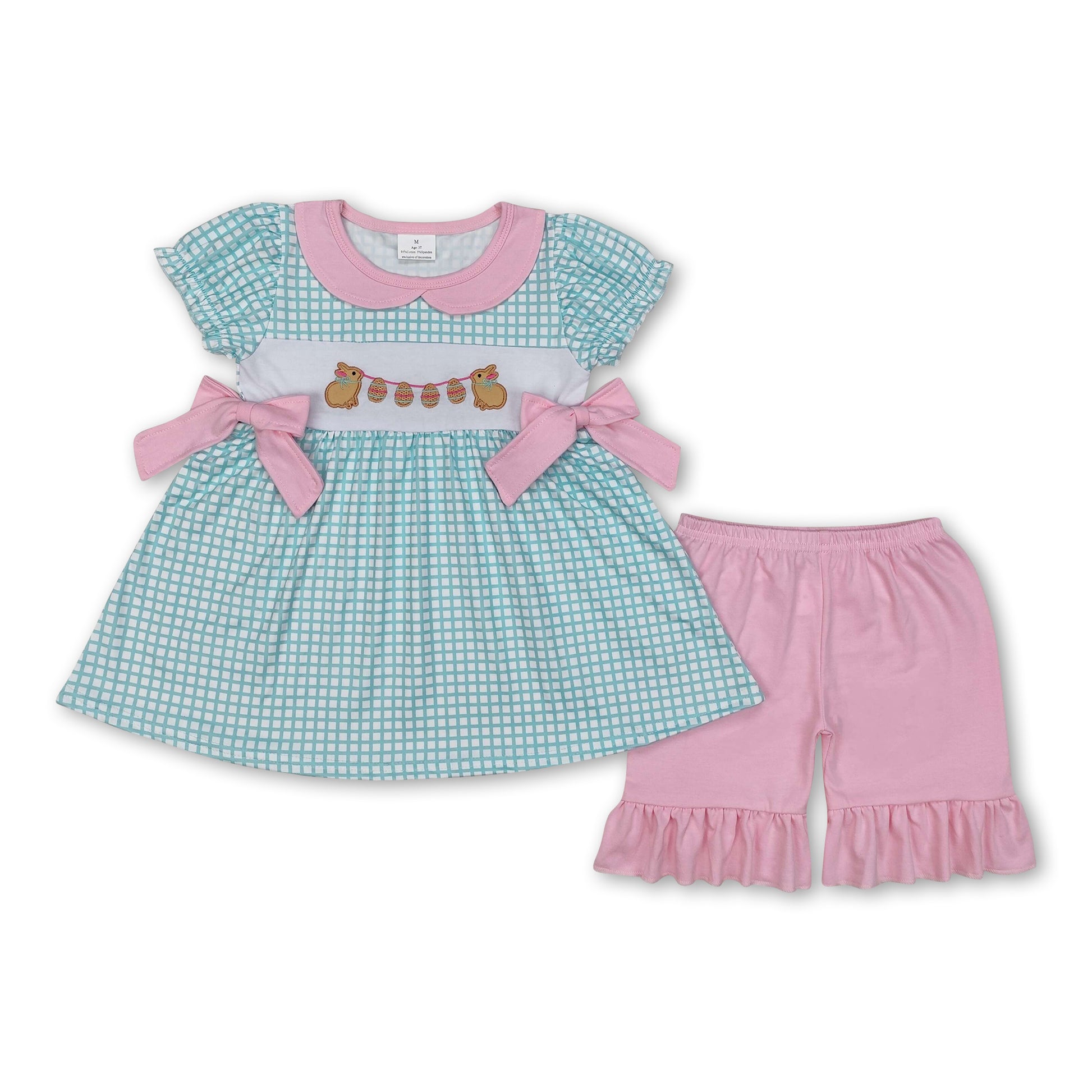 Plaid bunny eggs tunic ruffle shorts girls Easter outfits