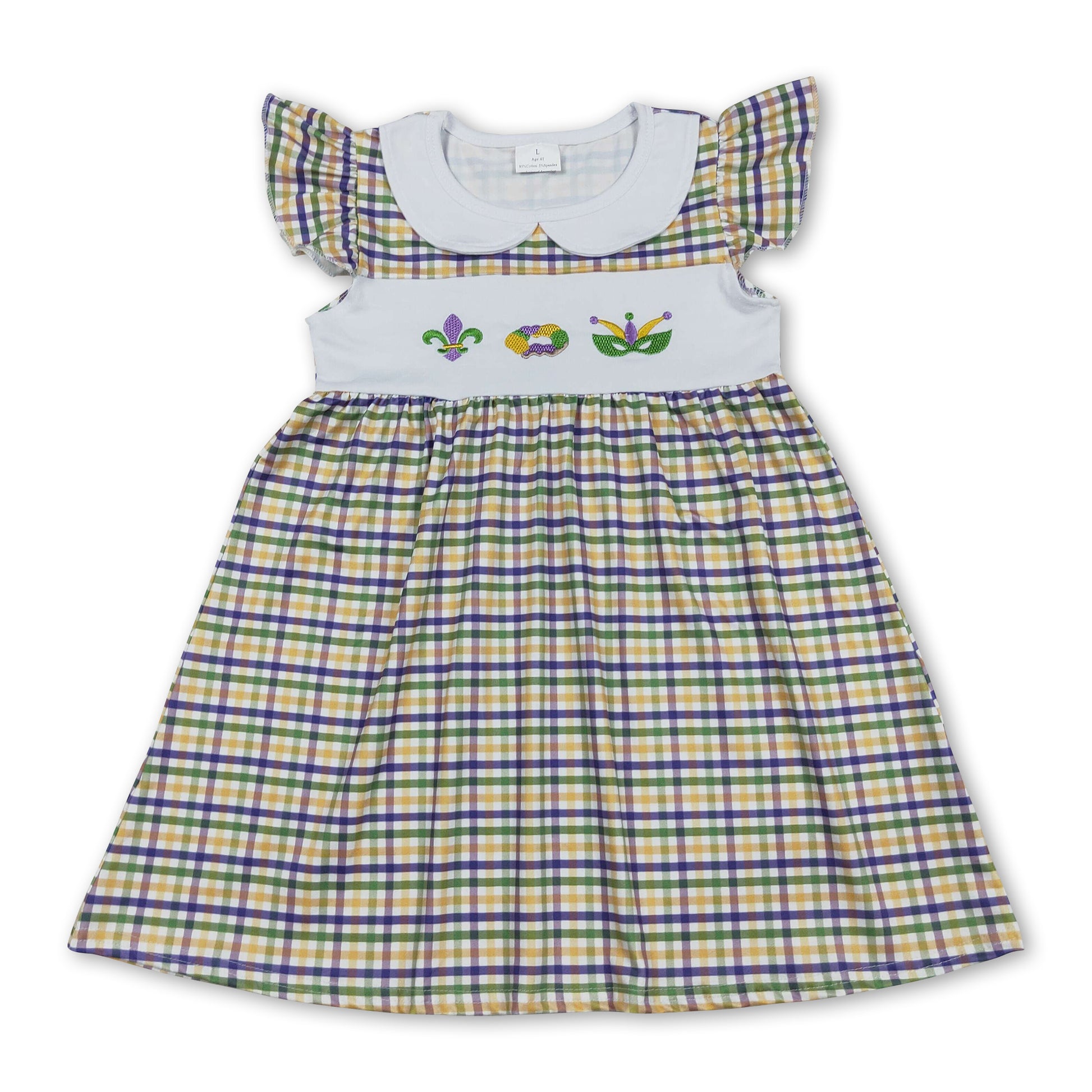 Plaid flutter sleeves donut kids girls Mardi Gras dress