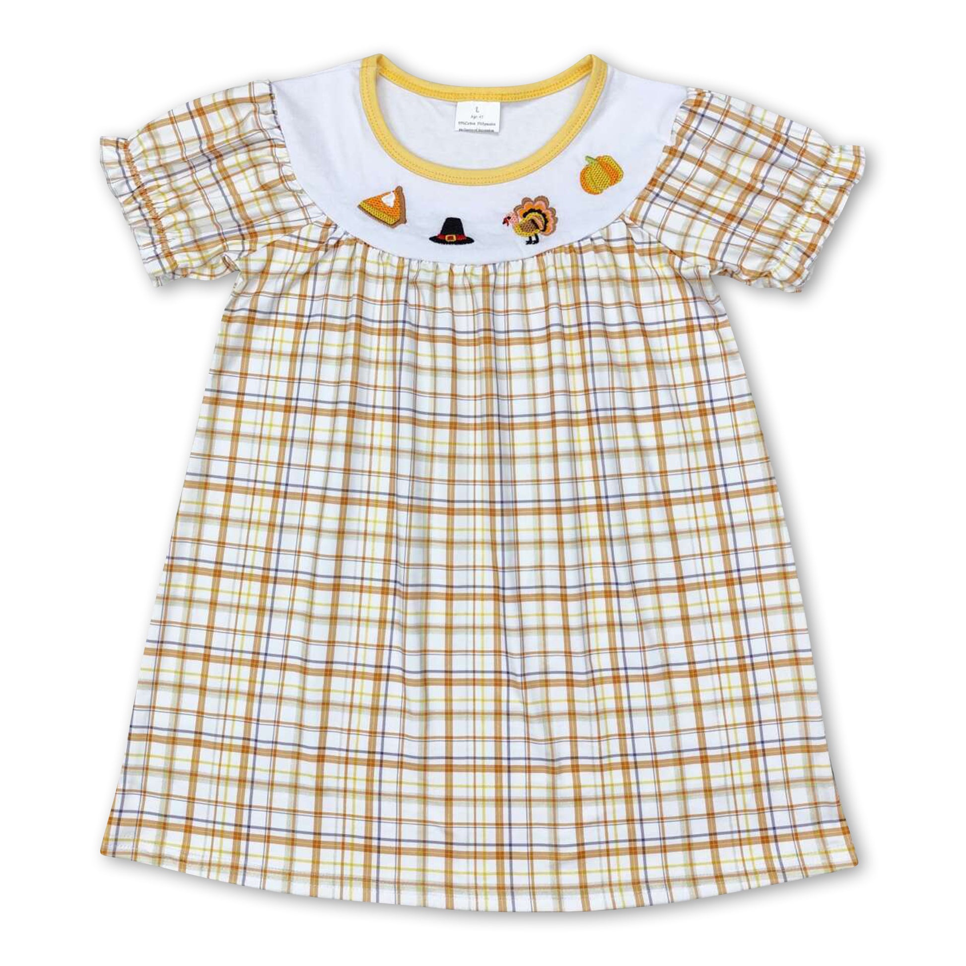 Plaid pumpkin pie turkey girls Thanksgiving dress