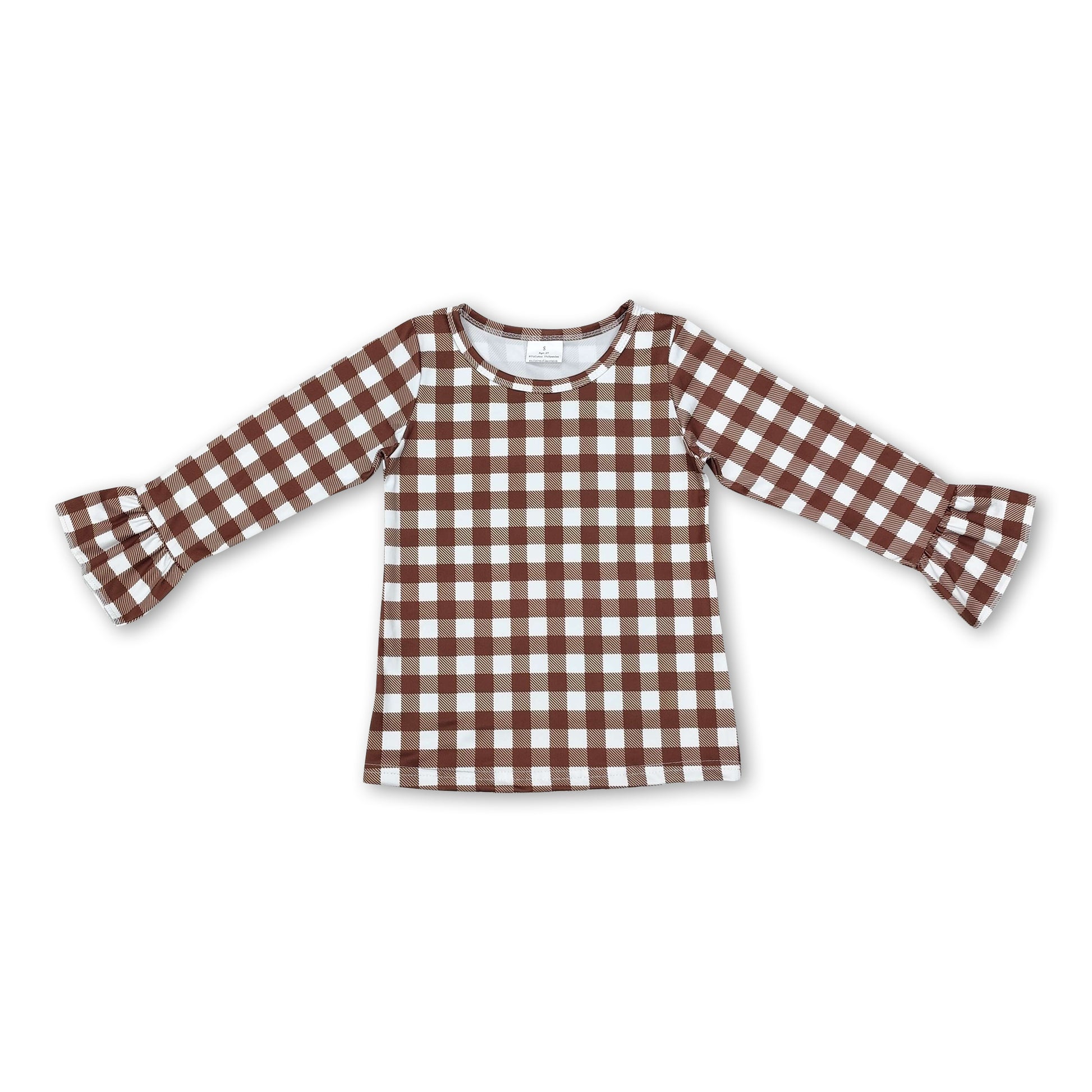 Plaid ruffle long sleeves kids girls shirt
