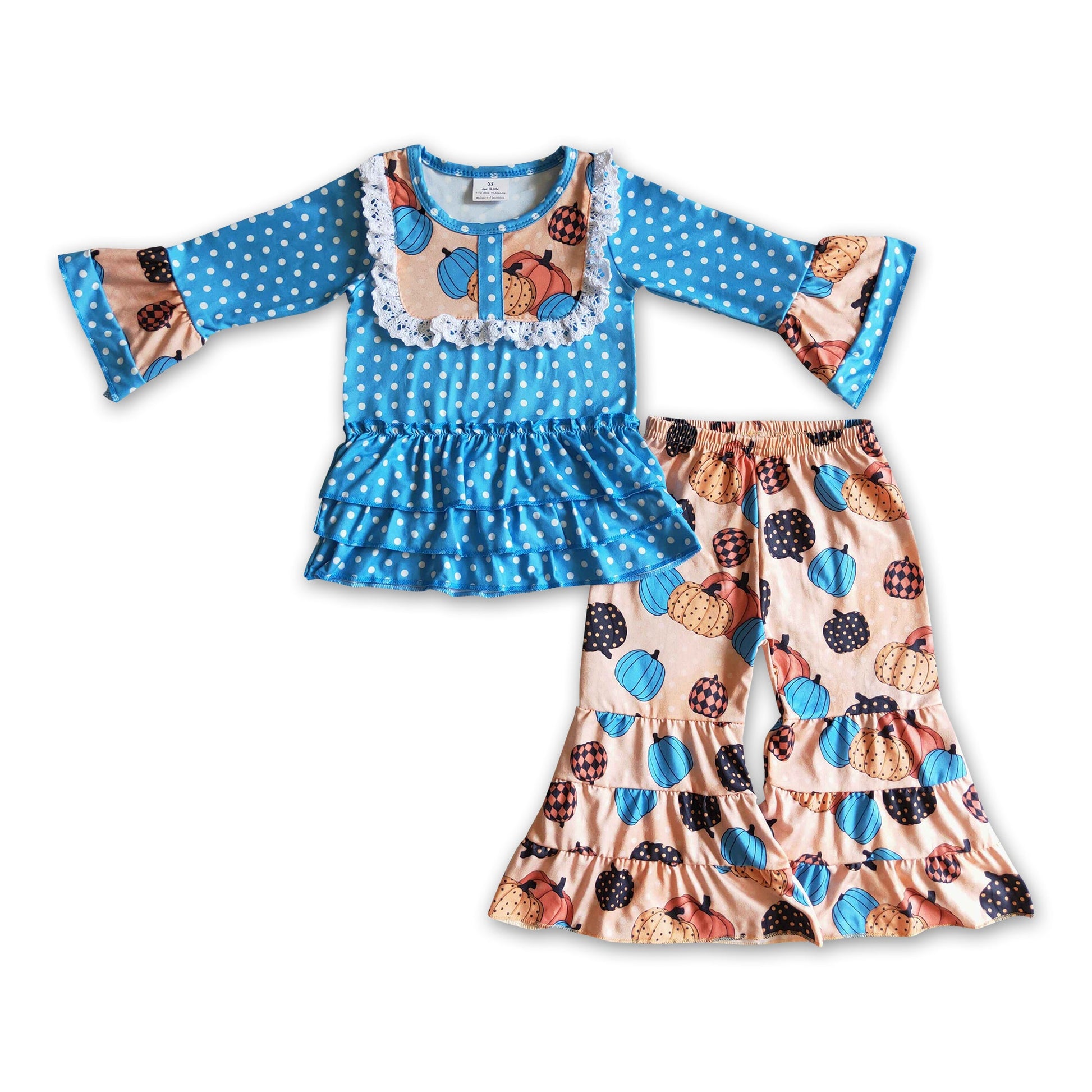 Polka dots ruffle shirt pumpkin pants girls Halloween clothing