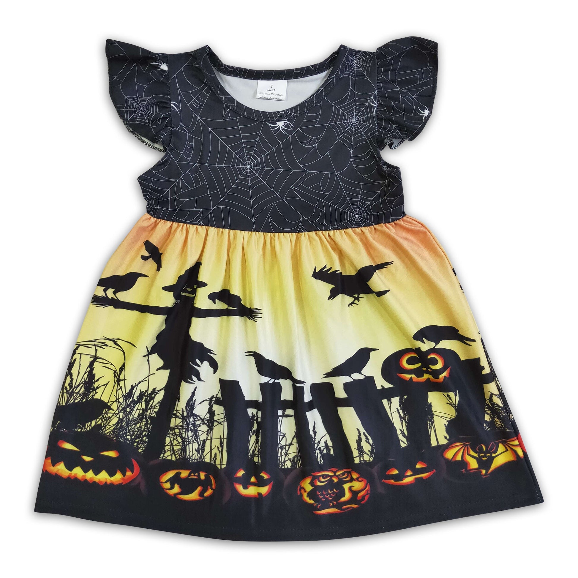 Pumpkin bat spiderweb girls Halloween dress