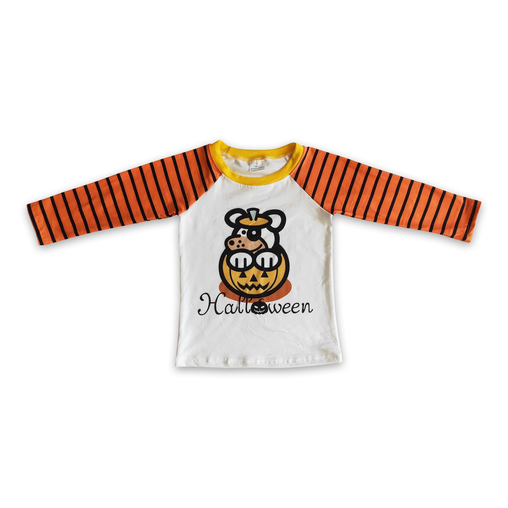 Pumpkin print orange stripe sleeves boy Halloween shirt