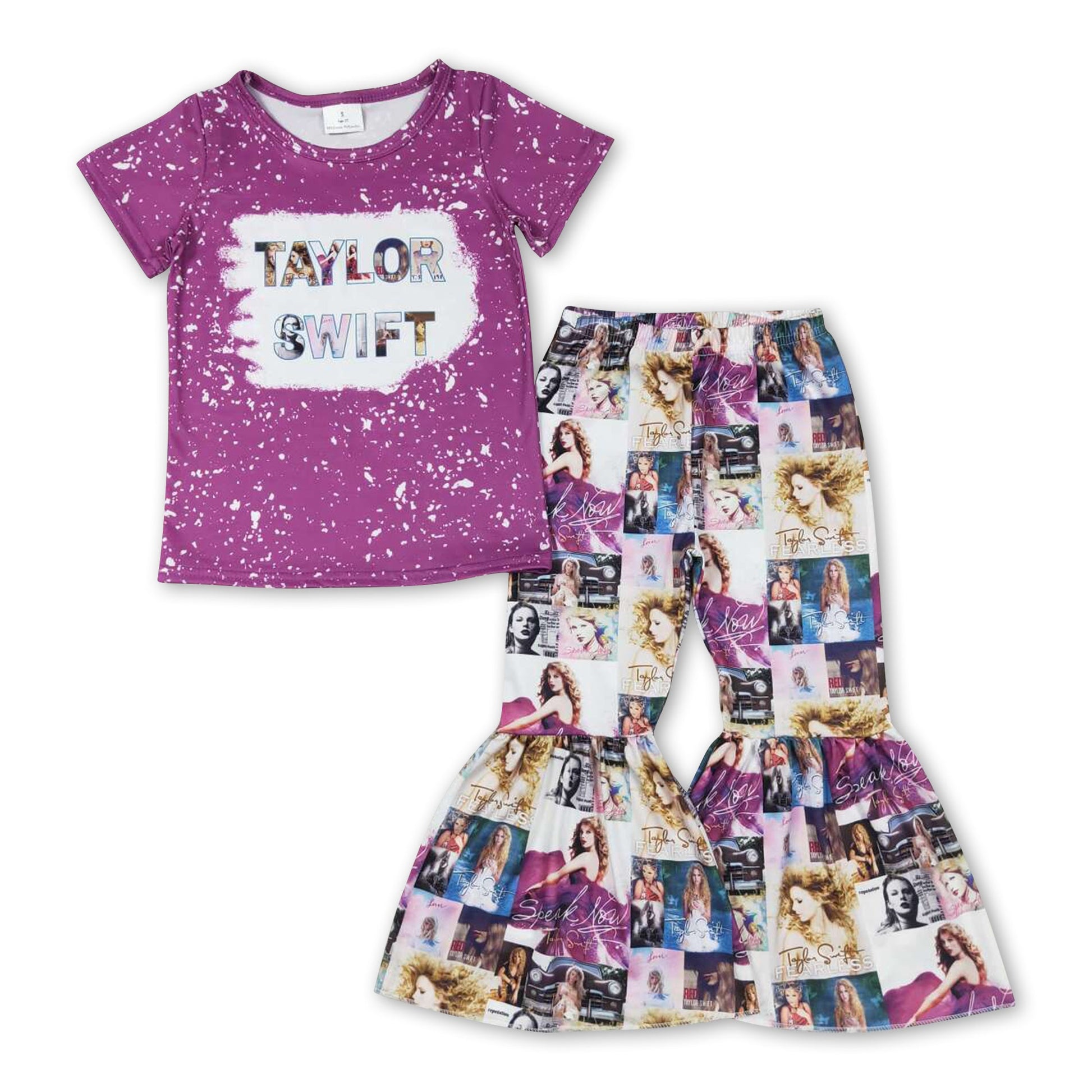 Purple bleached top bell bottom pants singer girls clothes