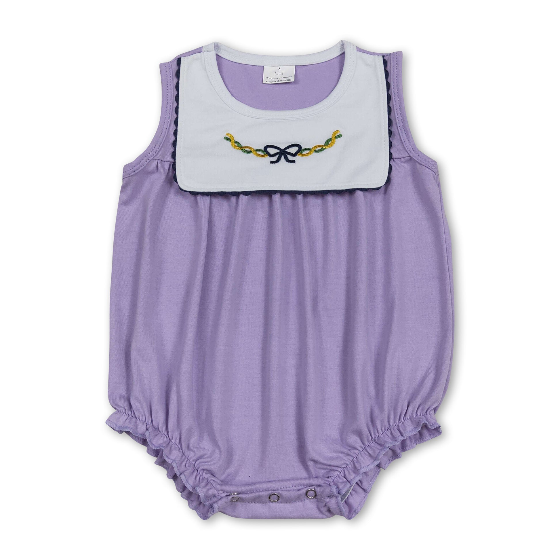 purple bows sleeveless baby girl Mardi Gras romper
