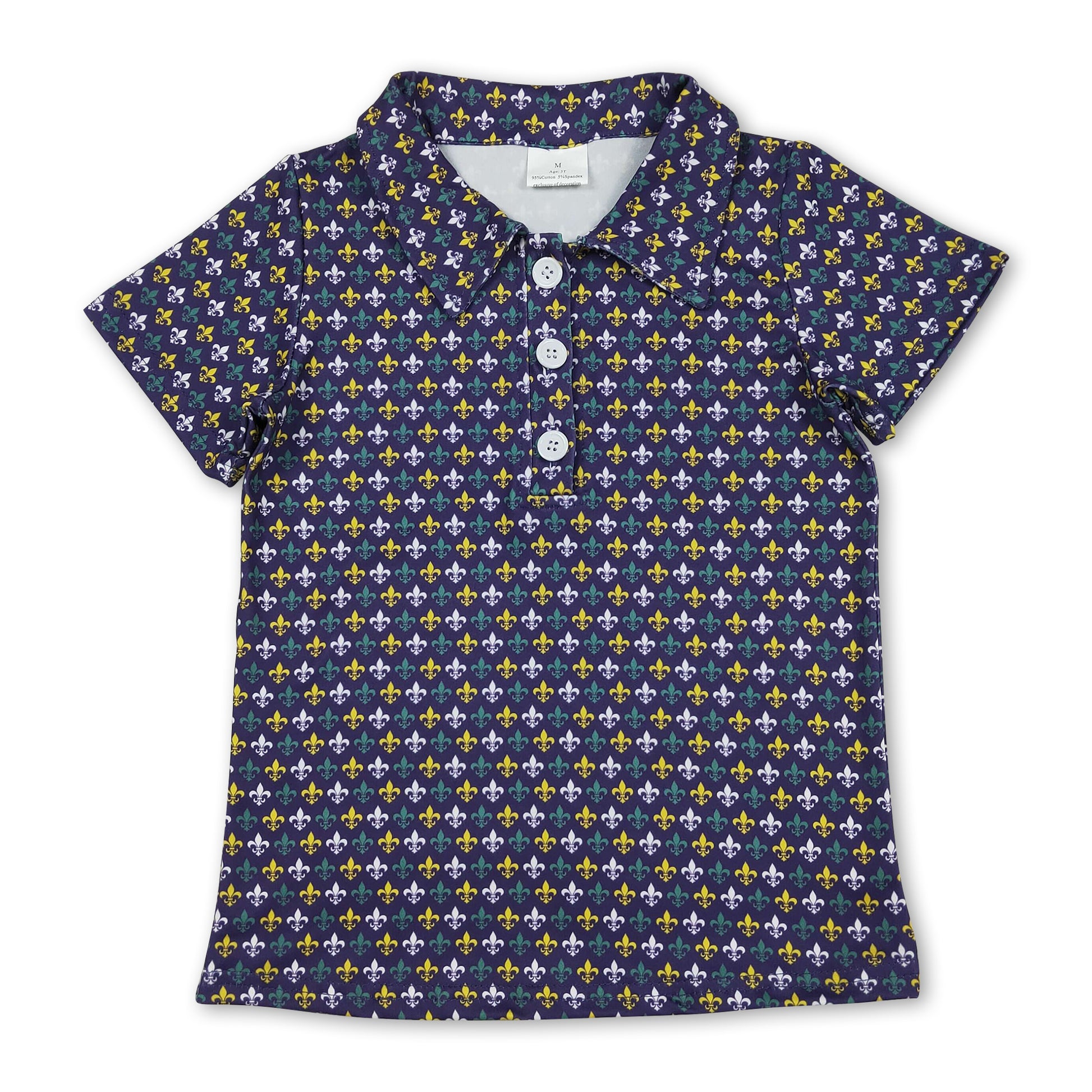 Purple green yellow short sleeves boys mardi gras polo shirt