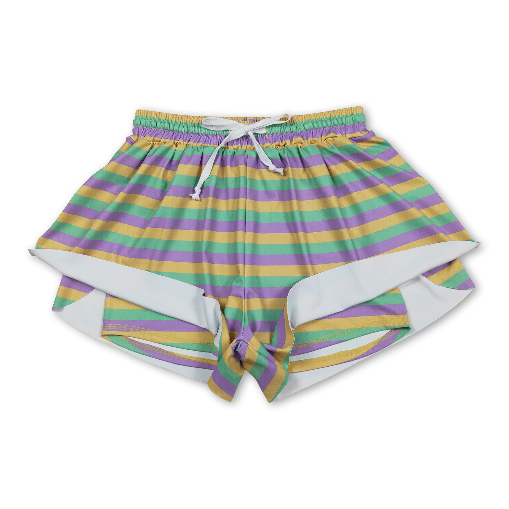 Purple green yellow stripe women Mardi Gras active shorts