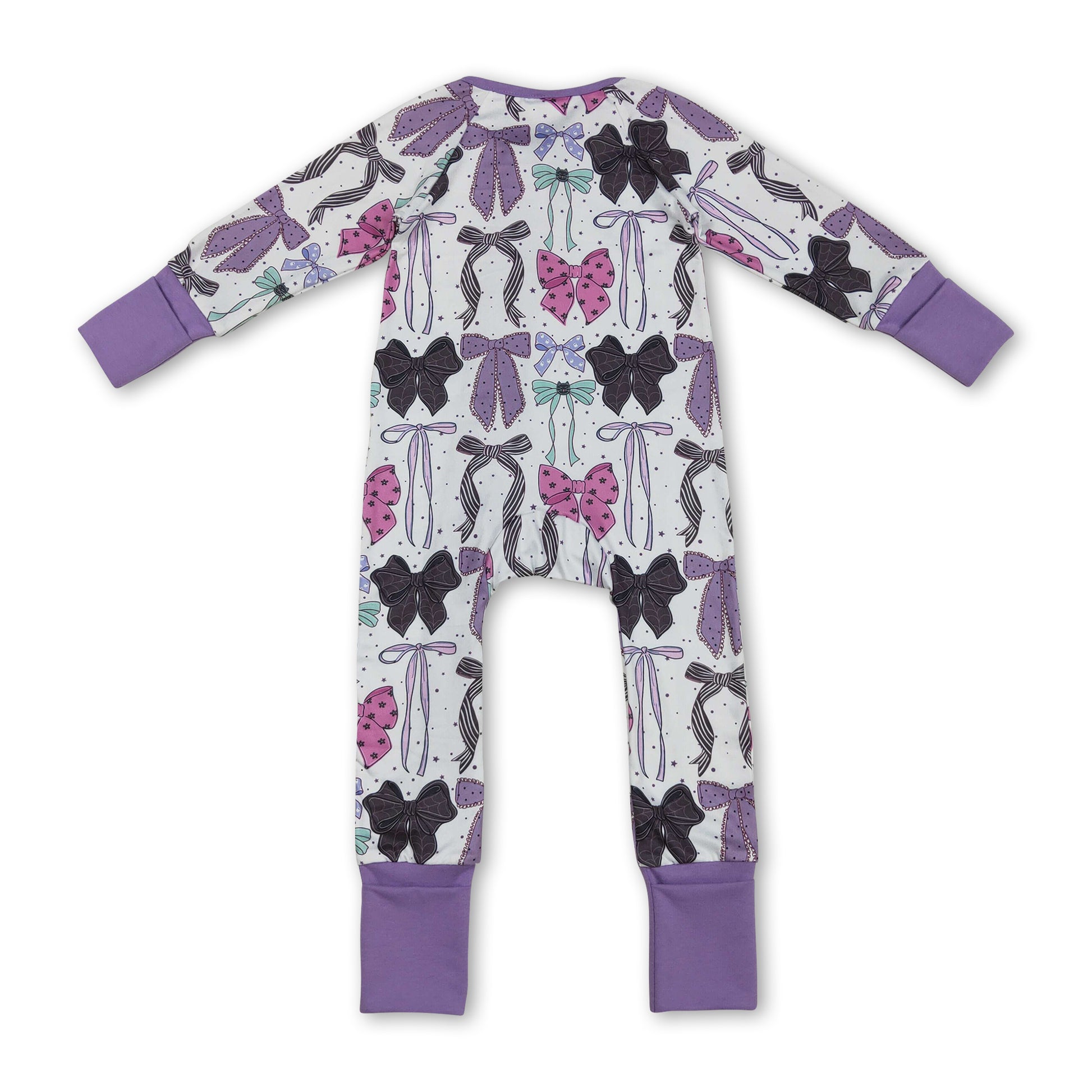 Purple long sleeves colorful bow girls Halloween zipper romper ship from US