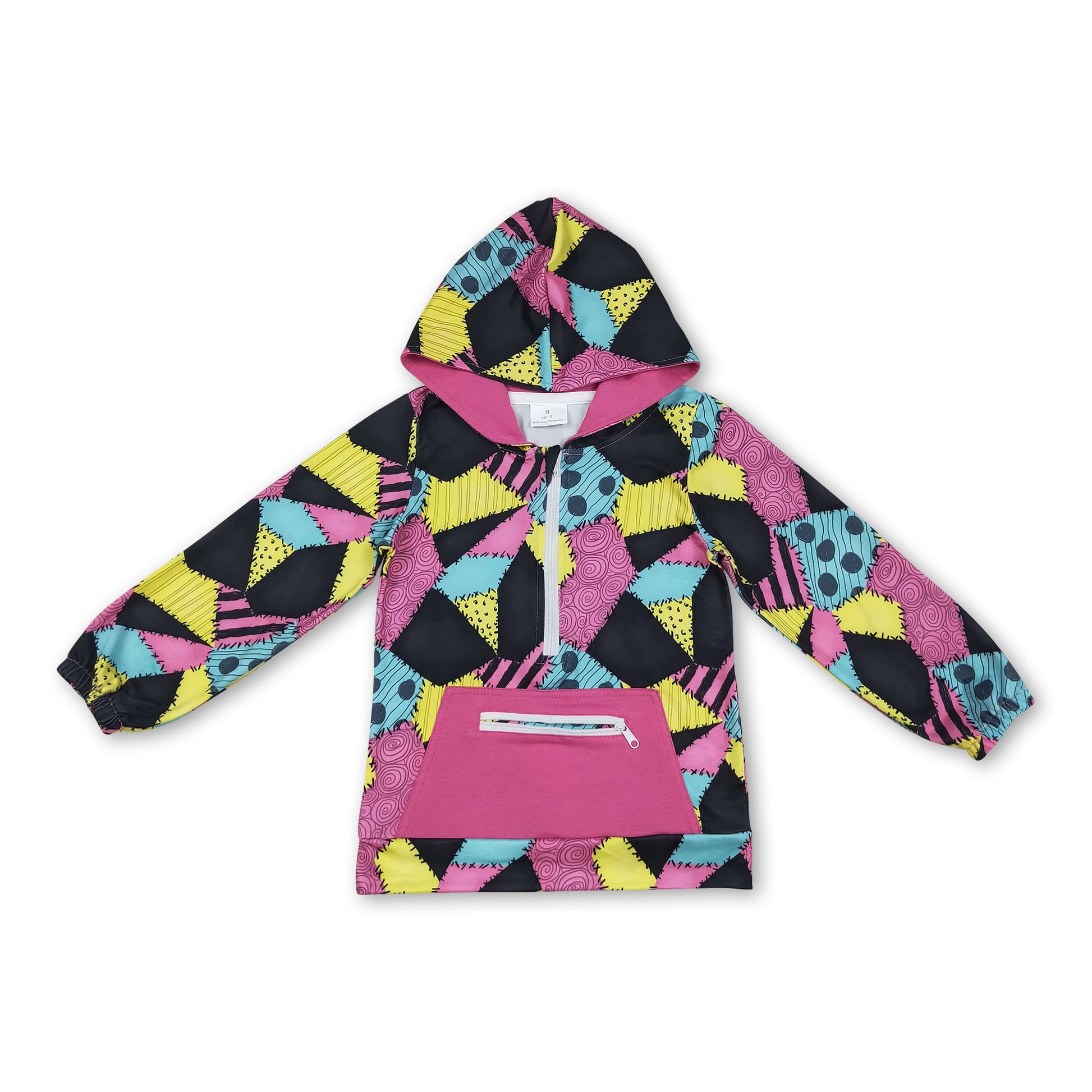 Purple pocket patchwork kids girls Halloween zipper hoodie