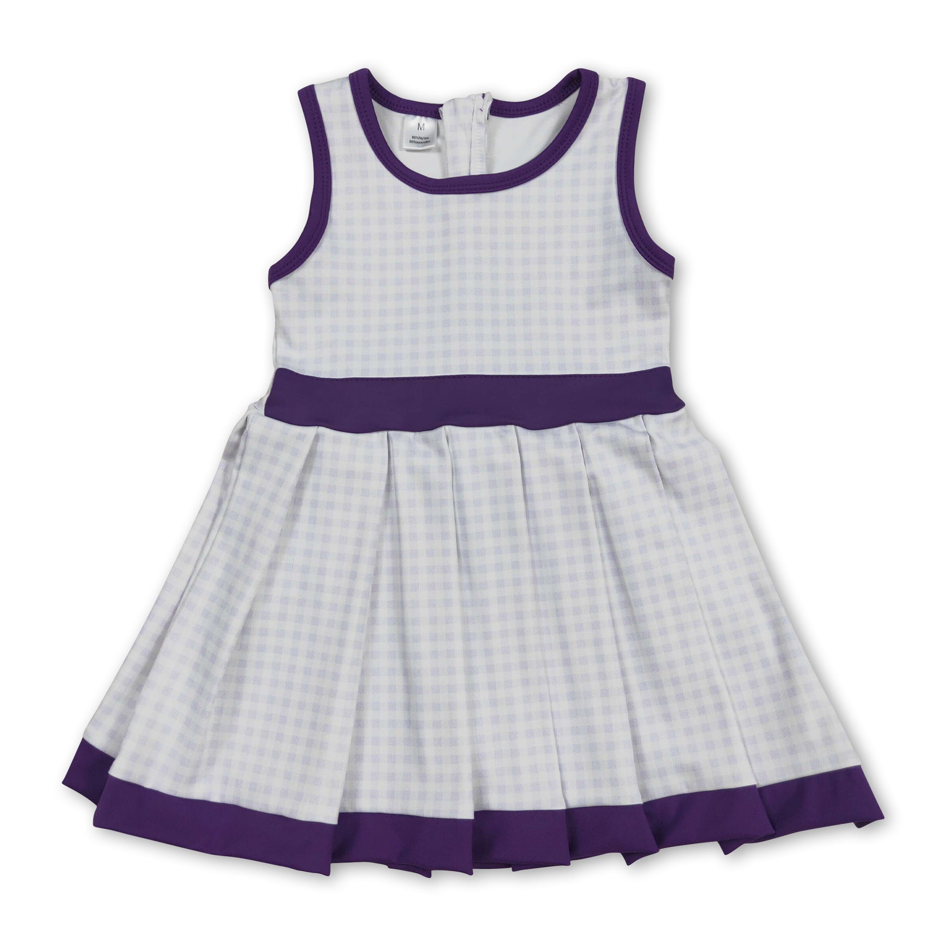 Purple sleeveless plaid kids girls pleated athletic dress