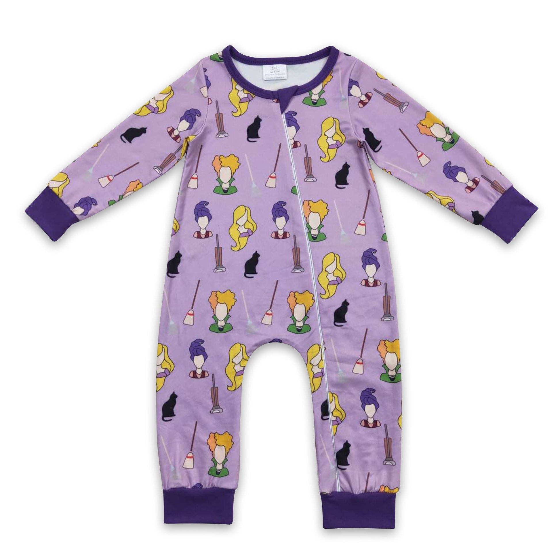 Purple witches baby girls Halloween zipper romper