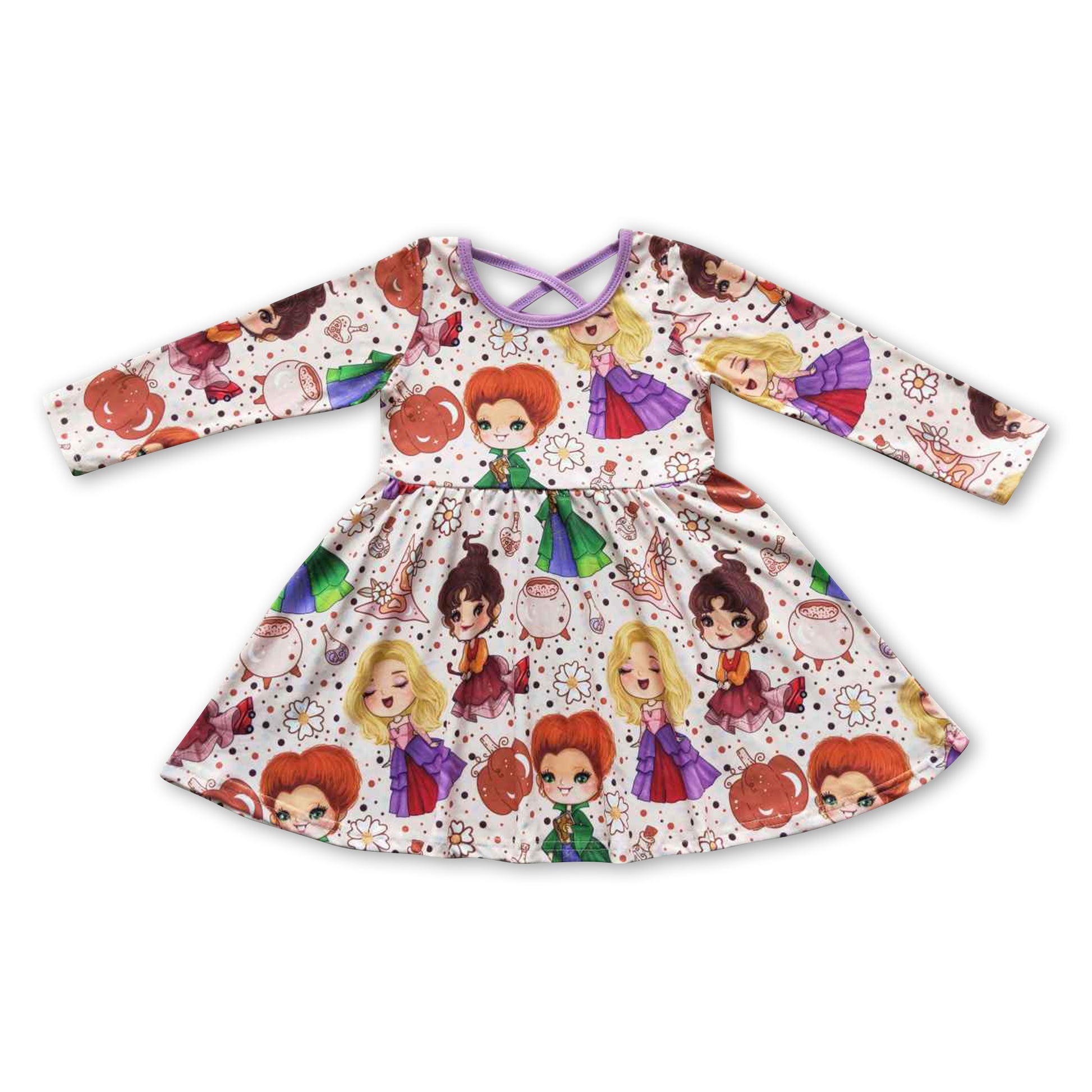 Purple witches pumpkin baby girls Halloween dress