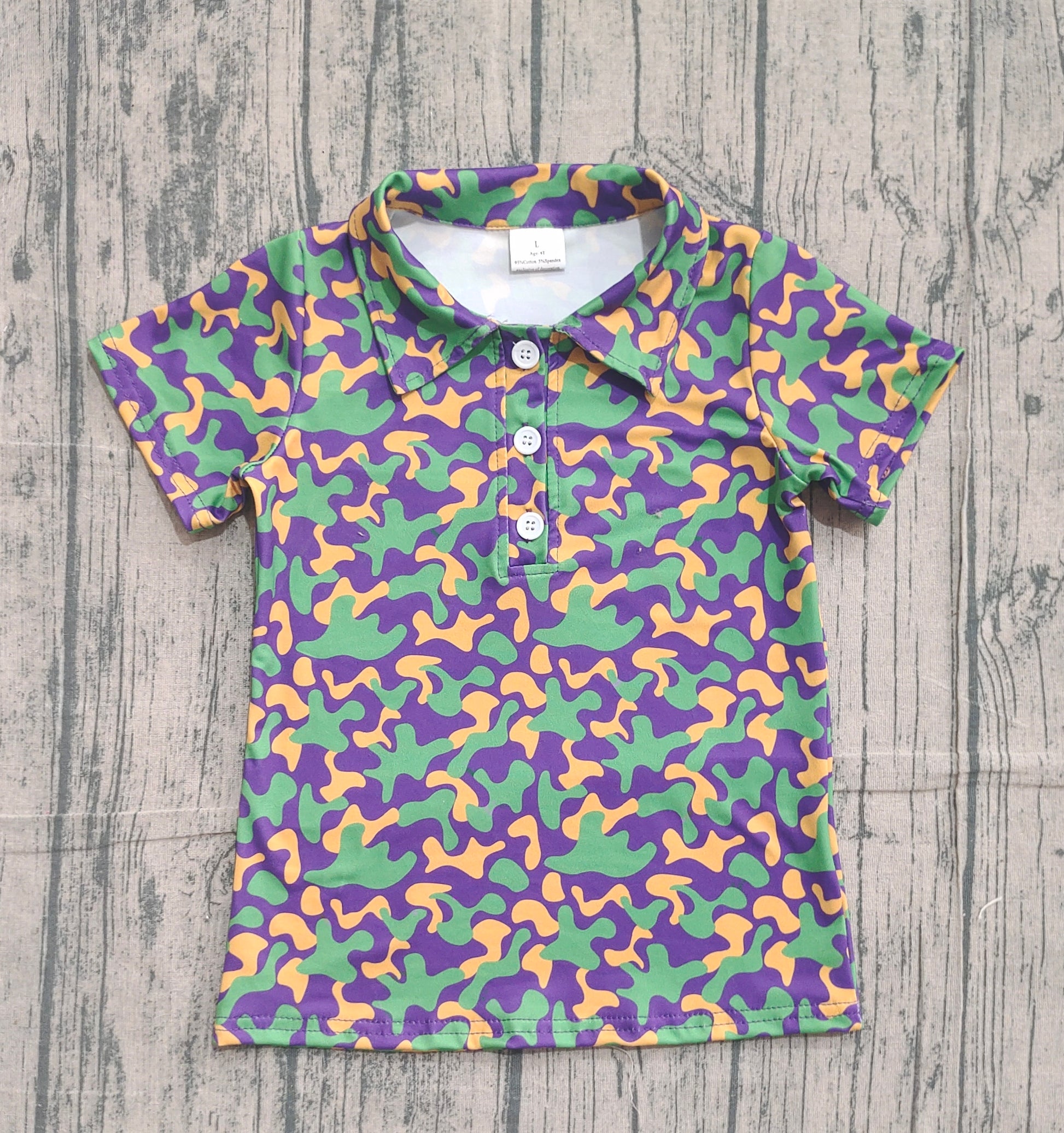 Purple yellow green camo kids boys Mardi Gras polo shirt