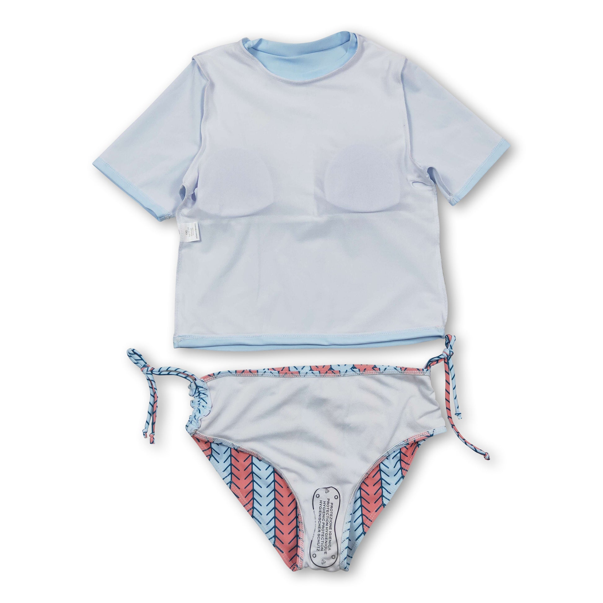 Rainbow short sleeves shirt shorts lining girls swimsuits
