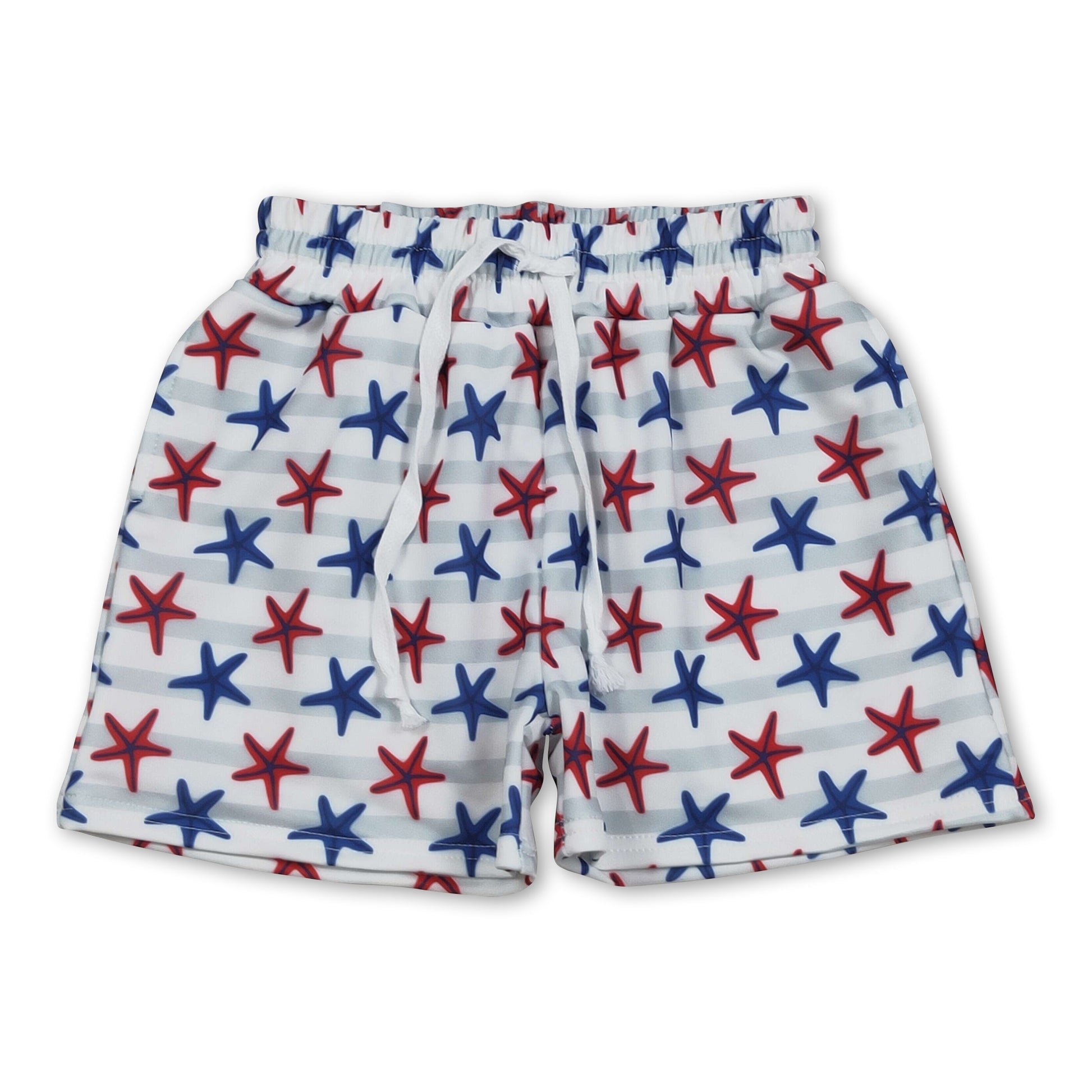 Red blue starfish stripe kids boys 4th of july swim trunks