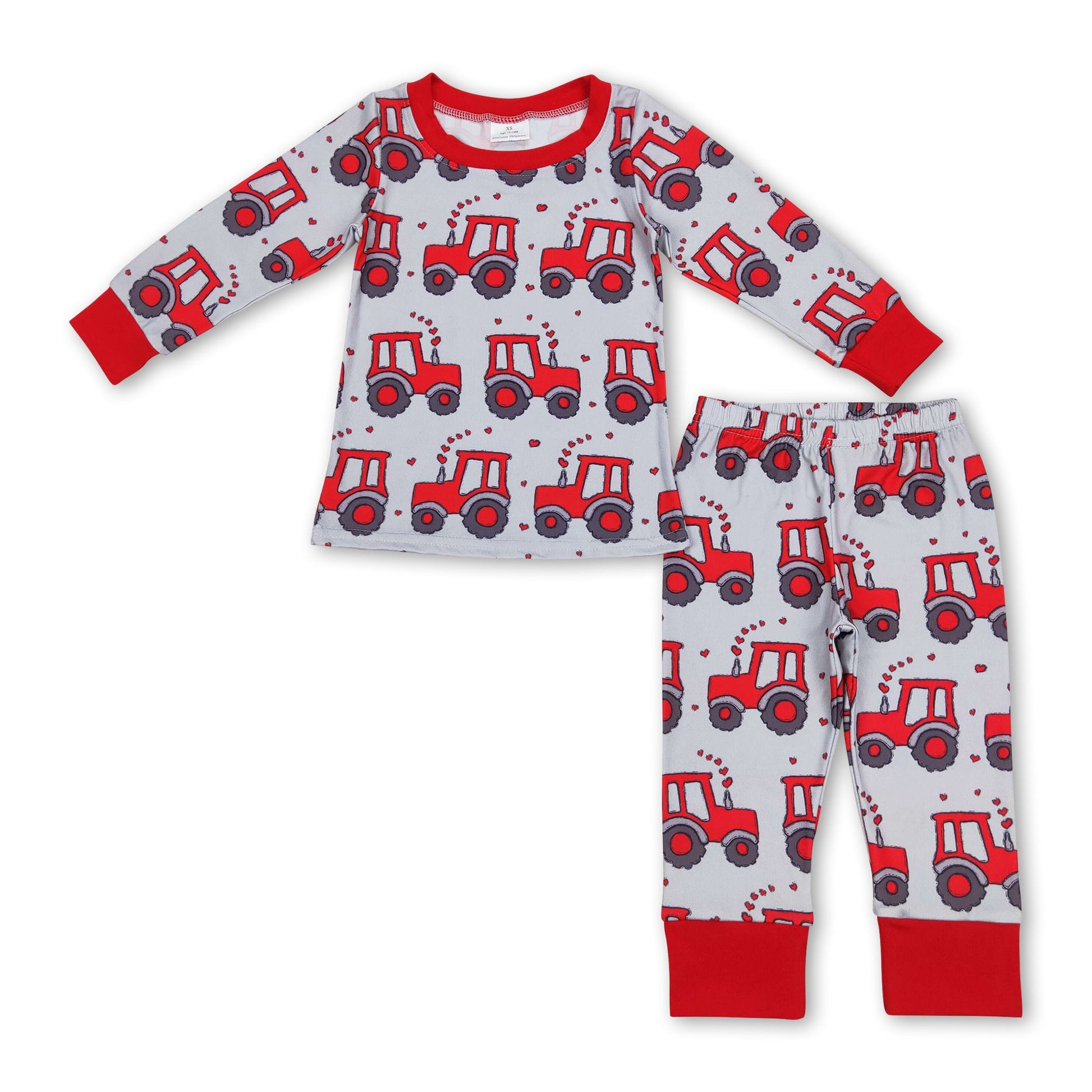 Red heart tractor kids boys farm valentines pajamas