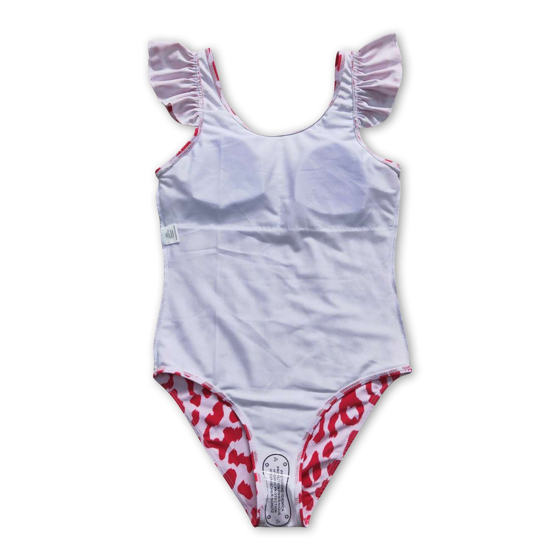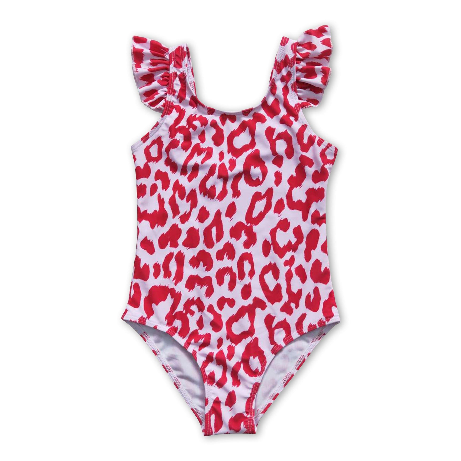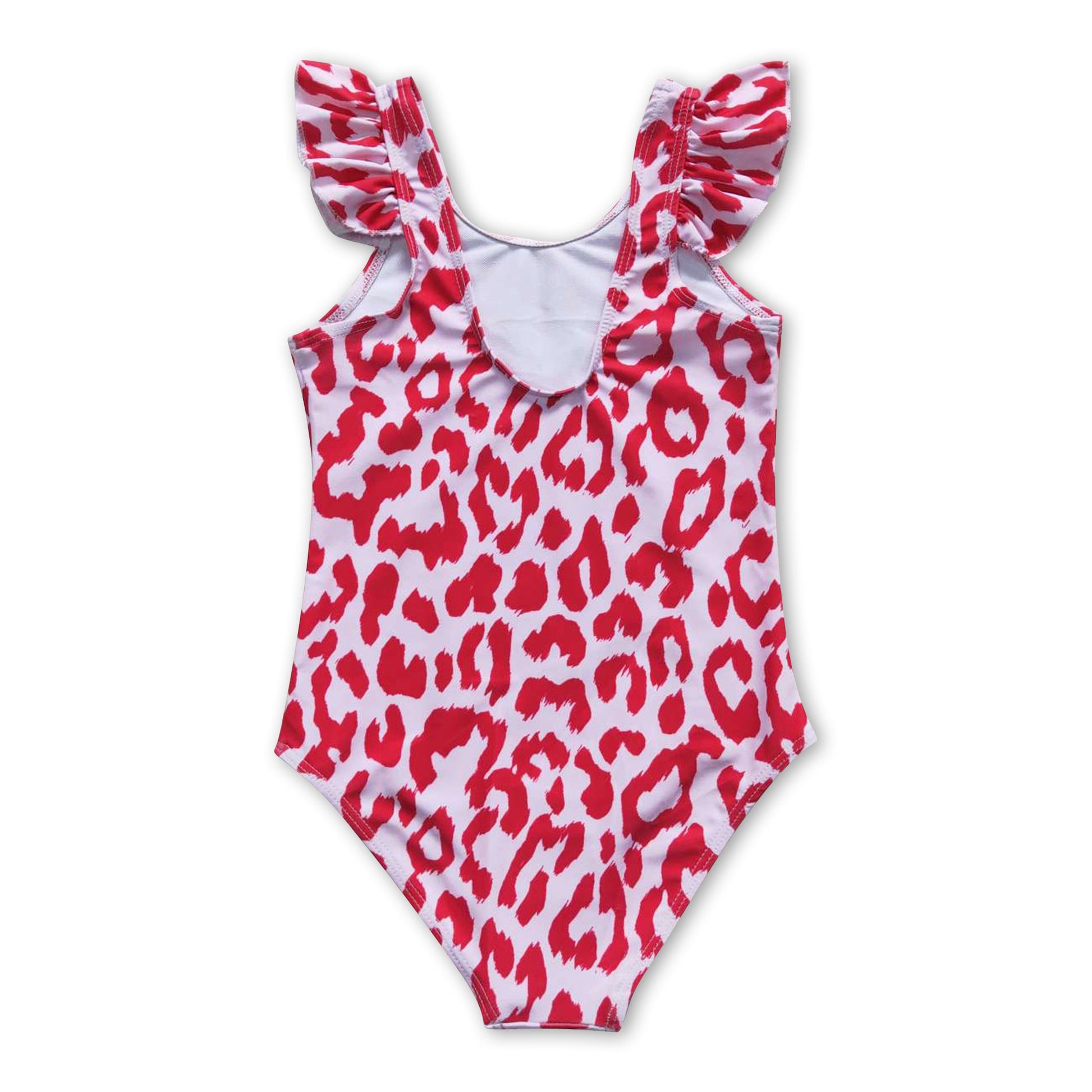 Red leopard flutter sleeves baby girls one pc swimsuit