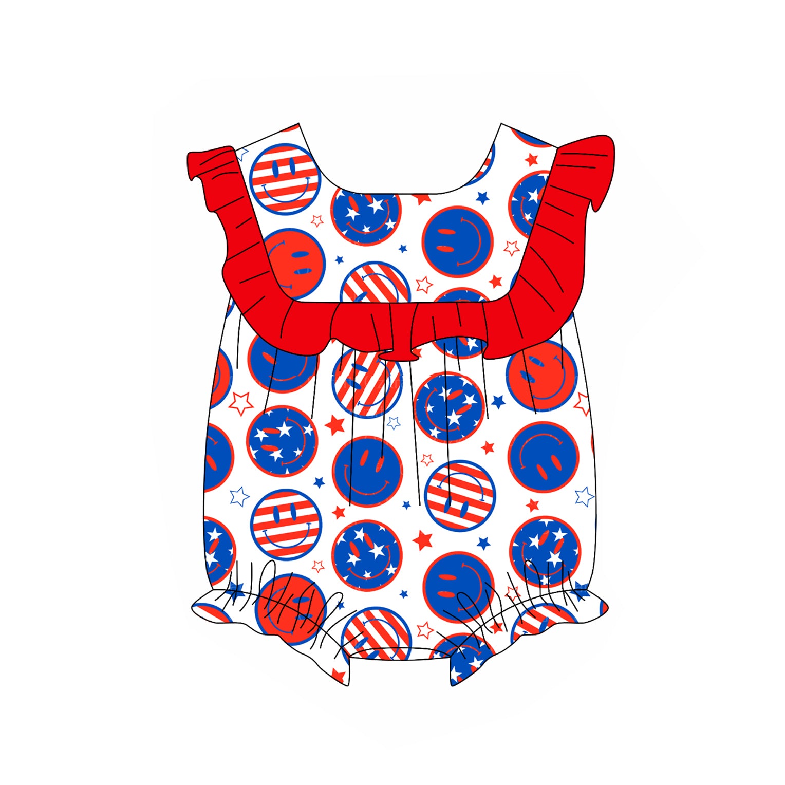 Red ruffle stars stripe smile baby girls 4th of july romper