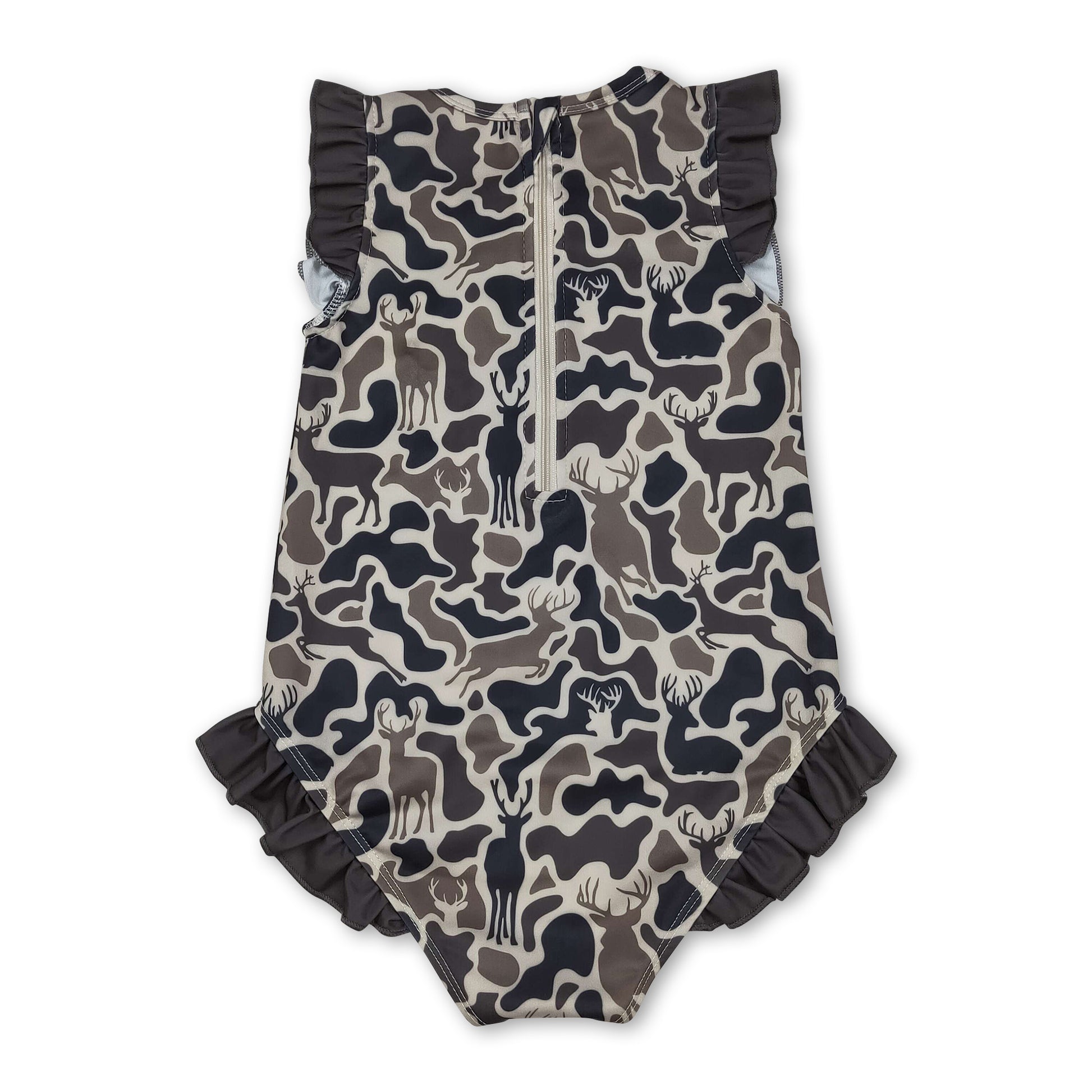 Ruffle camo deer hunting baby girls one piece swimsuit
