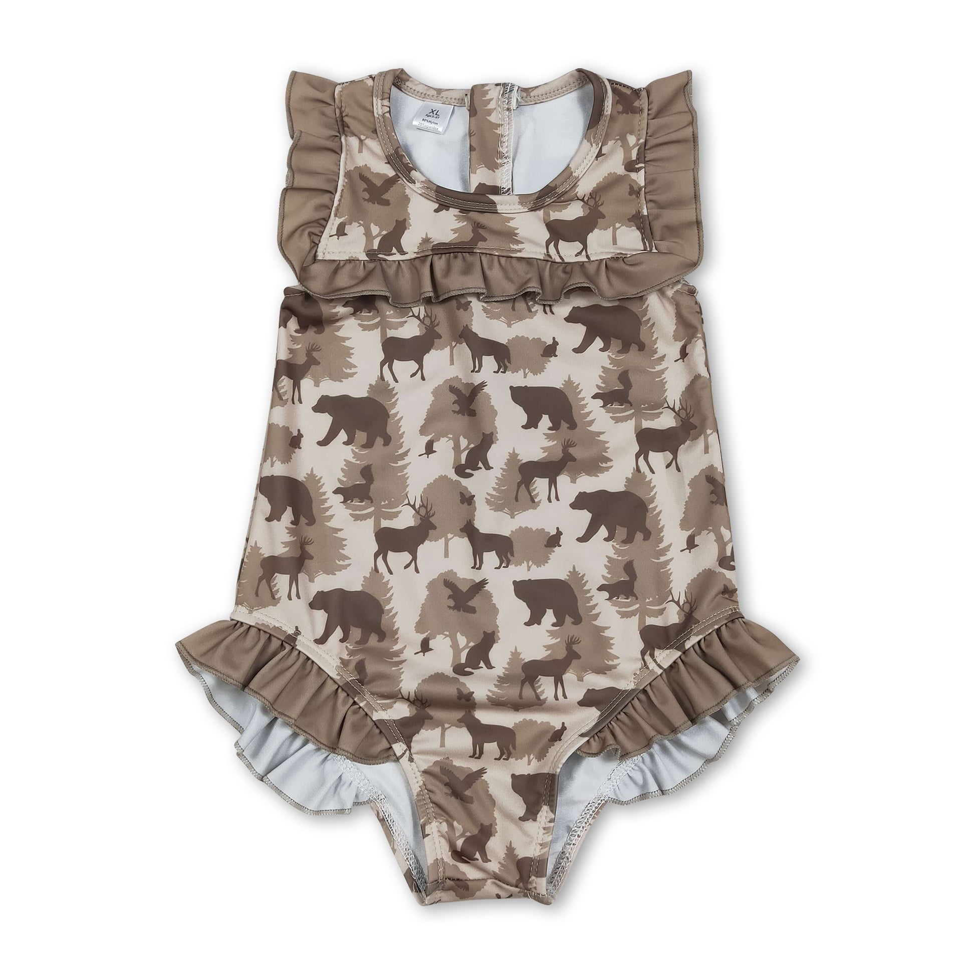 Ruffle deer duck dog bear hunting baby girls swimsuit
