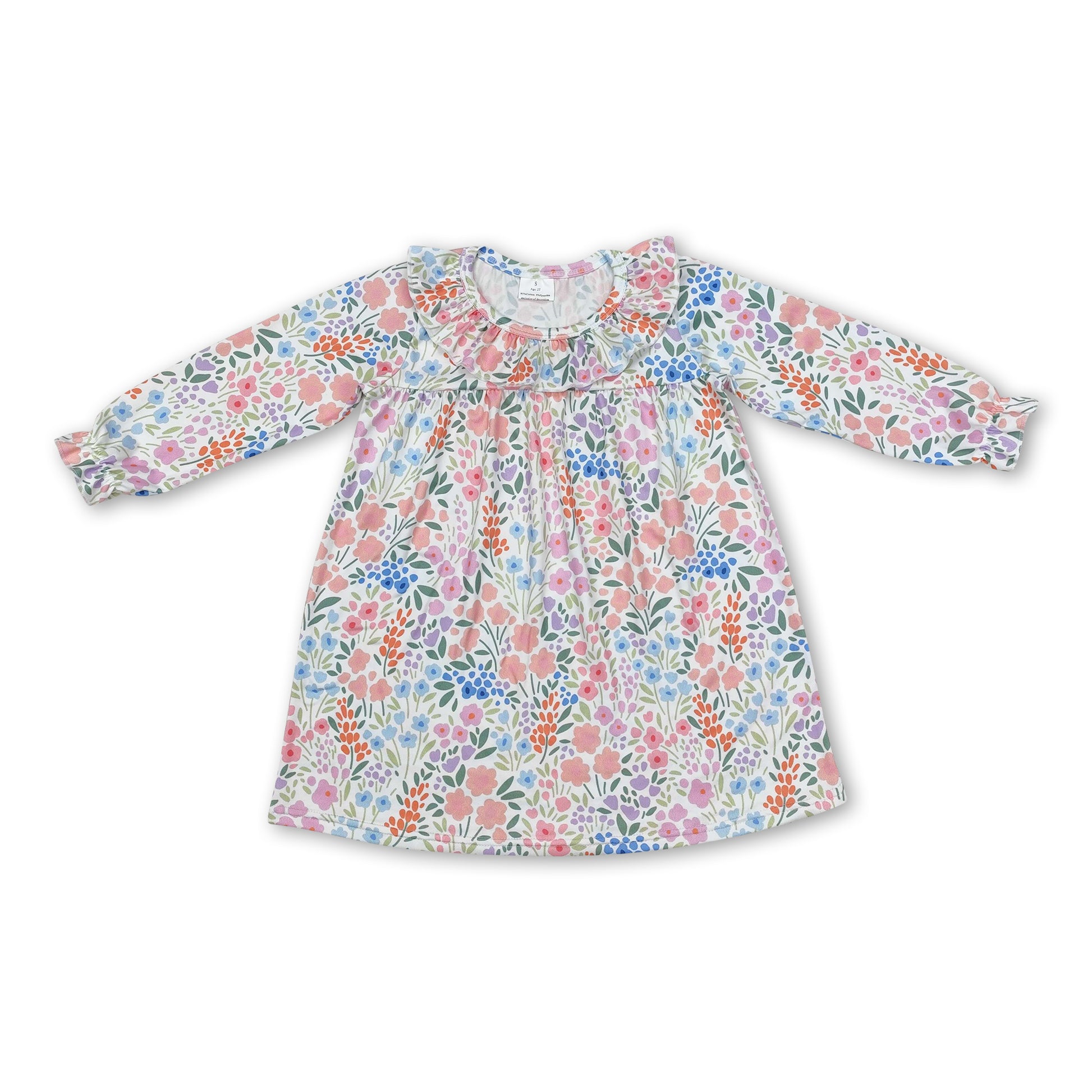 Ruffle long sleeves floral baby girls dresses