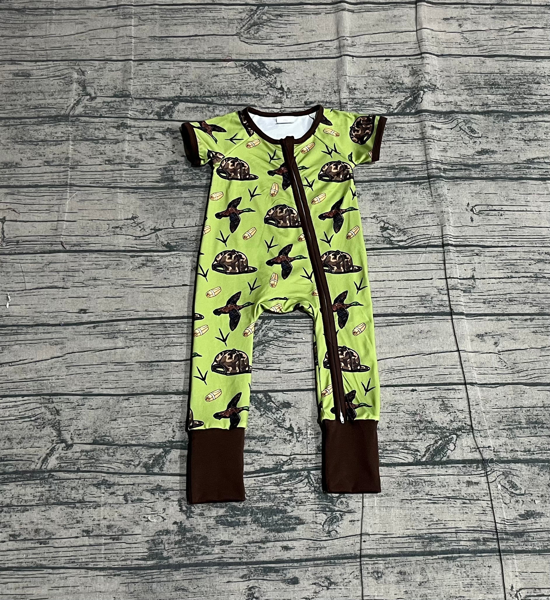 Short sleeves camo hat duck baby boy zipper romper