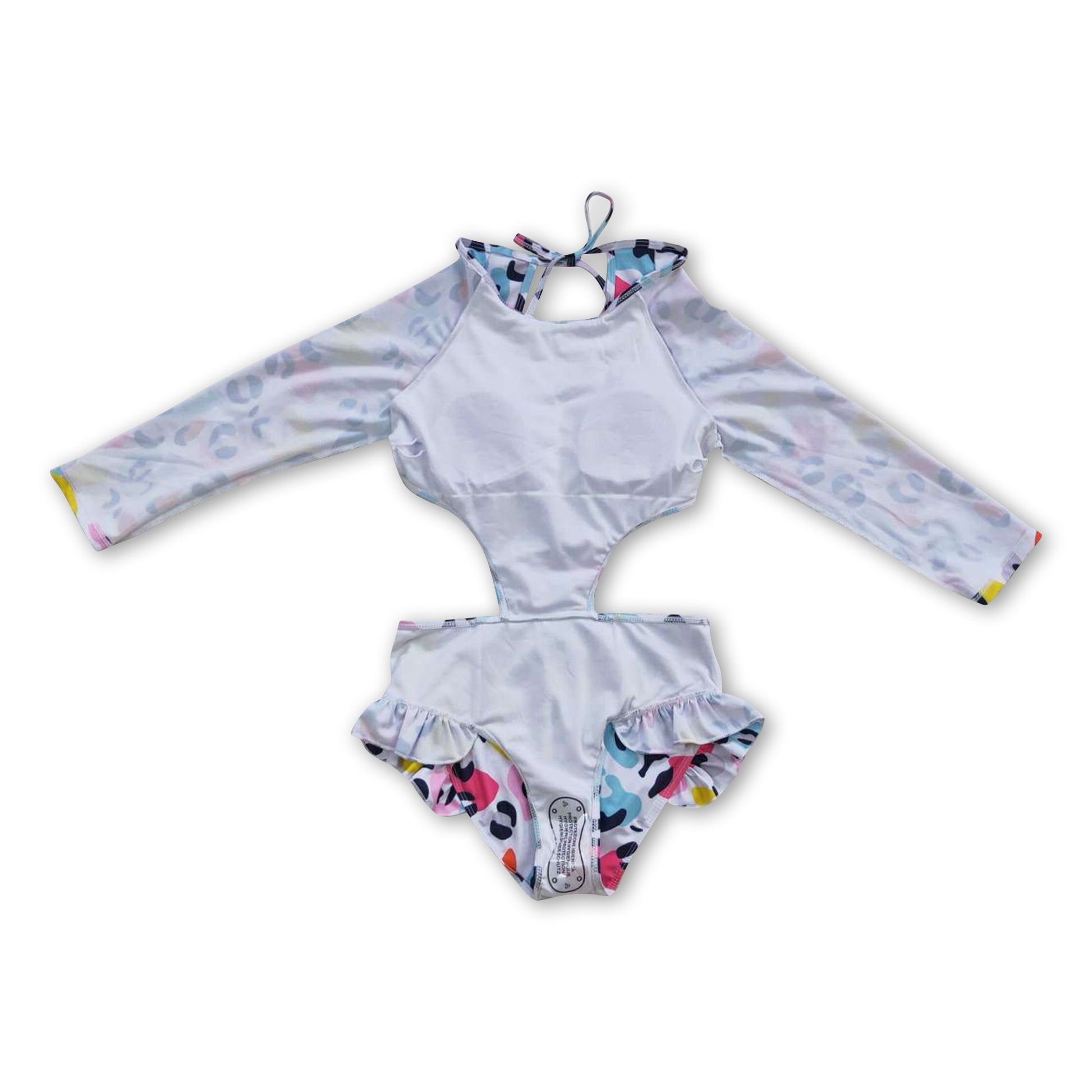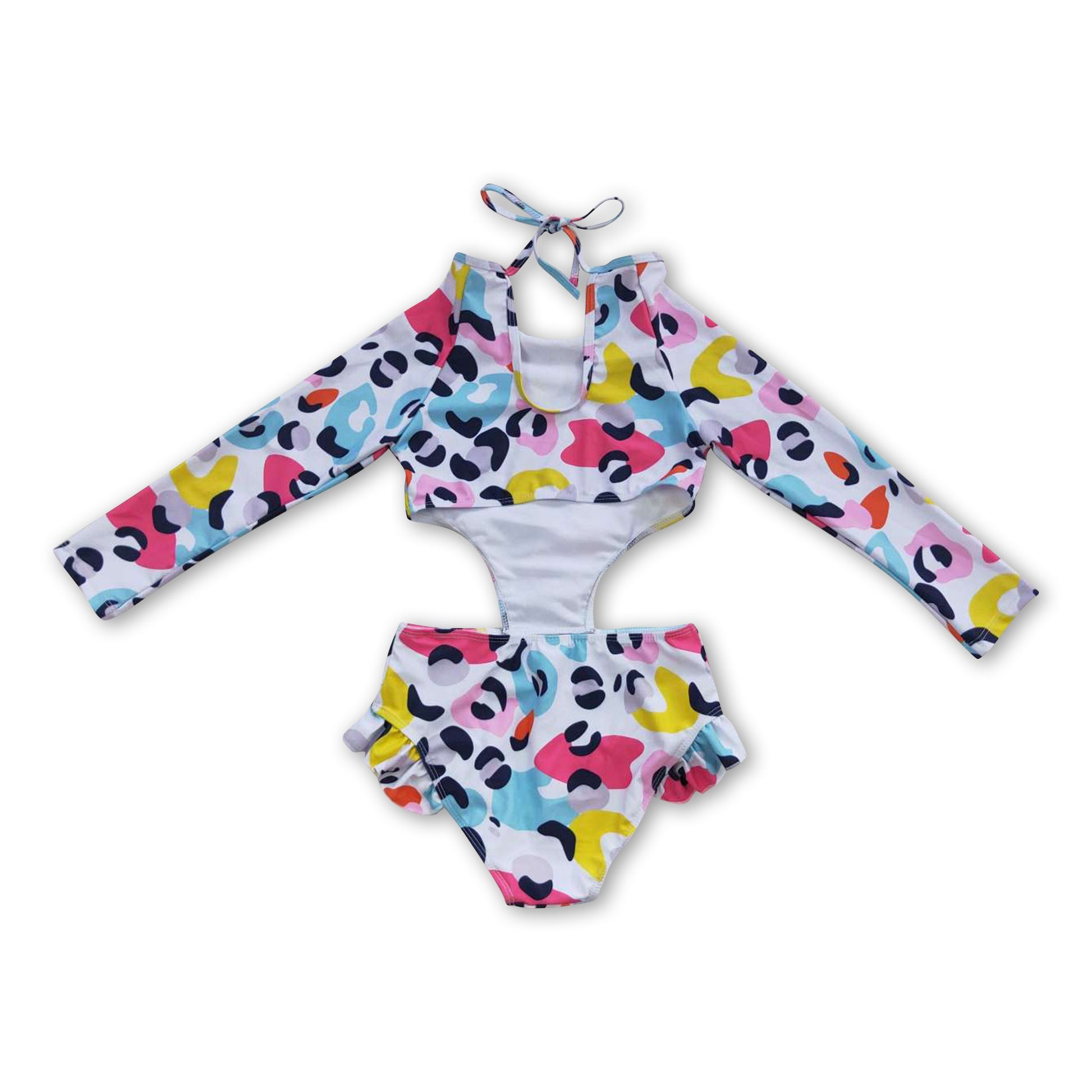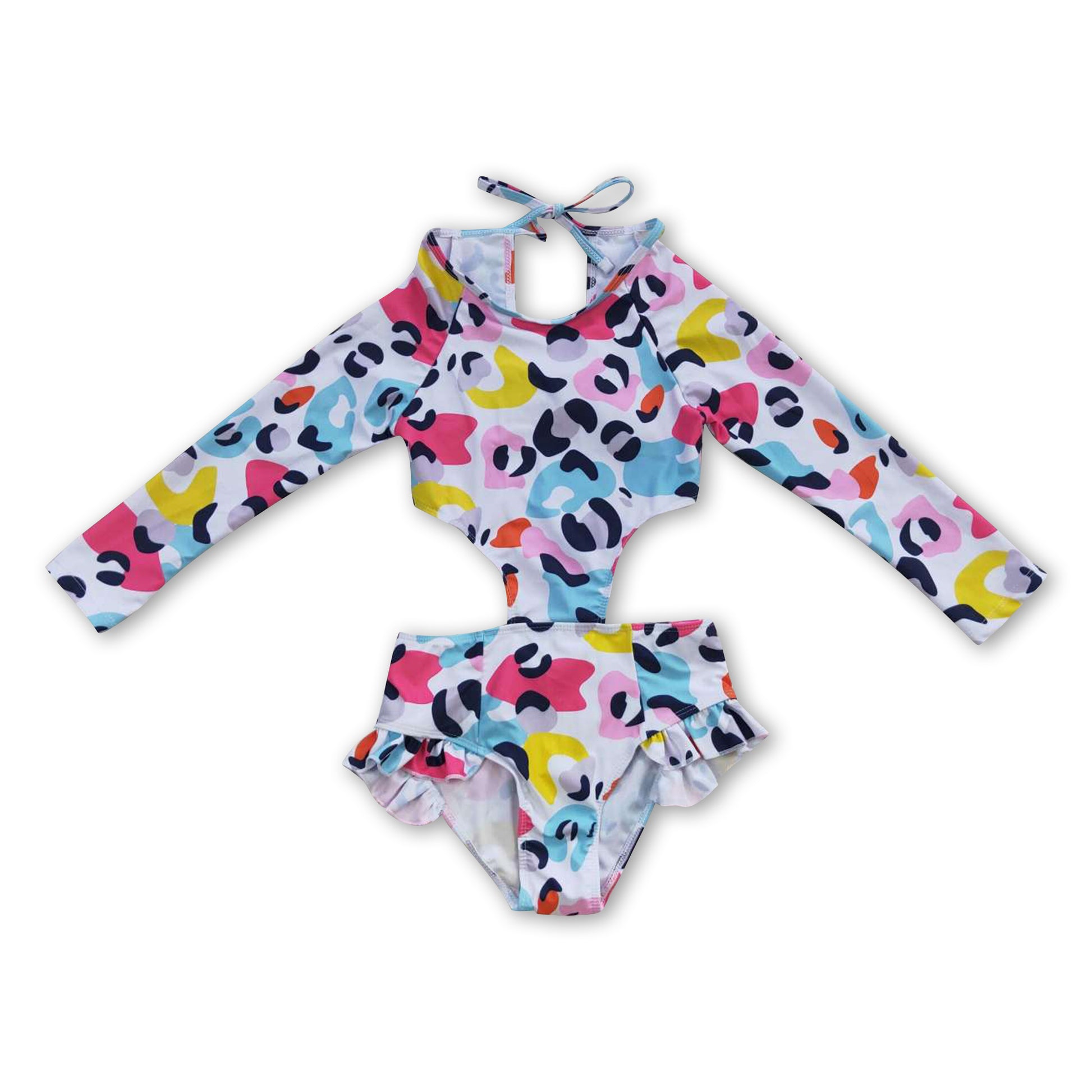 Short sleeves colorful leopard one pc baby girls swimsuit