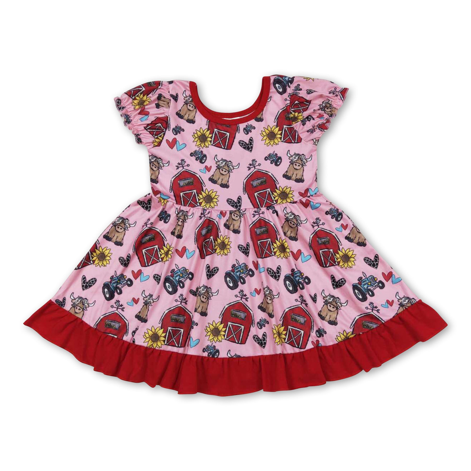 Short sleeves cows sunflower farm girls dresses